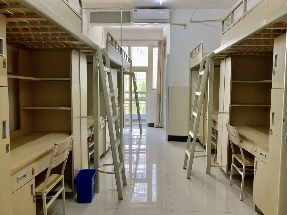 四人间:两两相对,配有空调、上床下桌、阳台,家具、洗衣房等配套设施一应俱全。