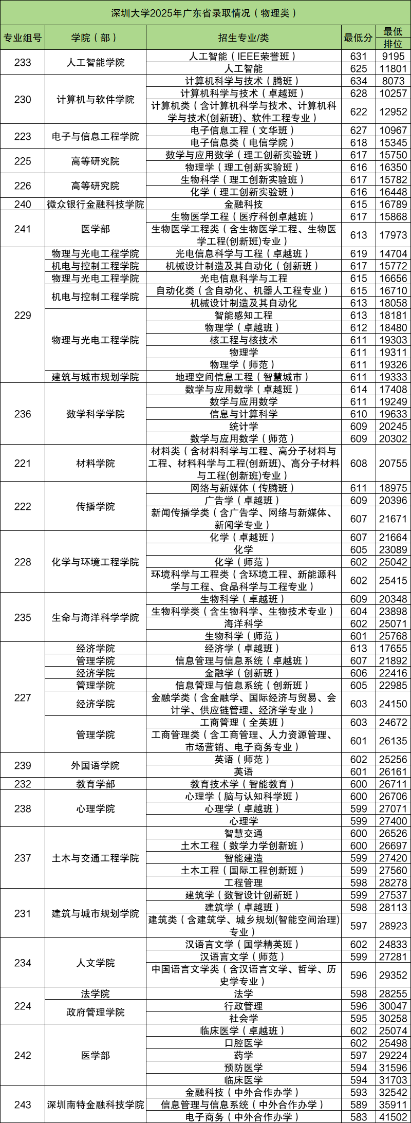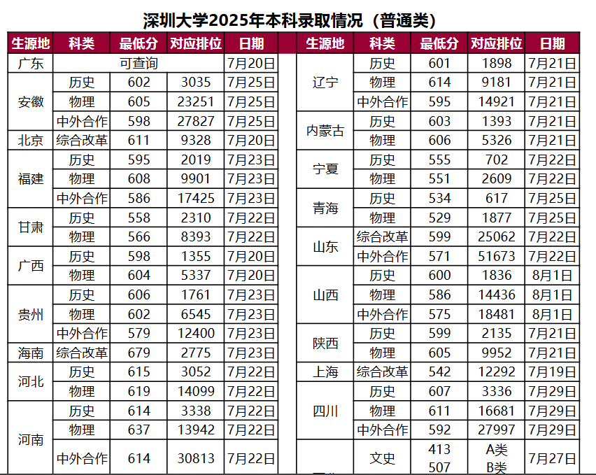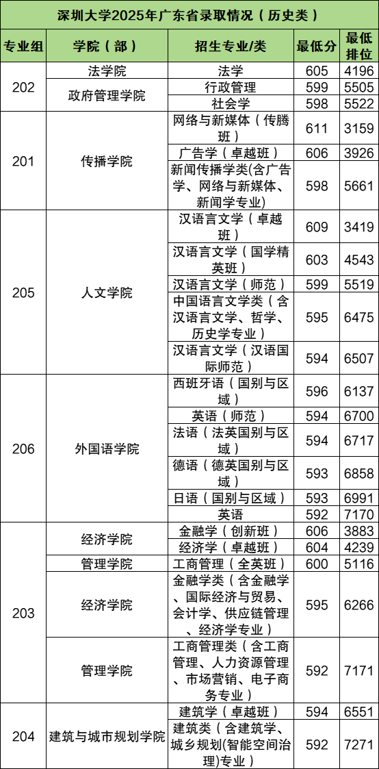 二、2025深圳大学录取分数线
