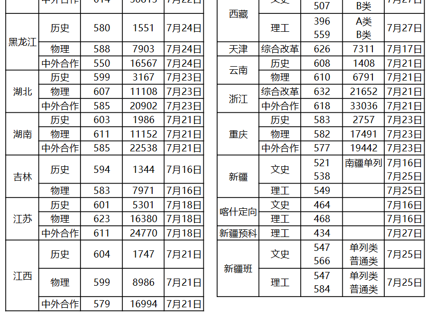 四川:历史类最低607分、物理类最低611分,中外合作最低592分。