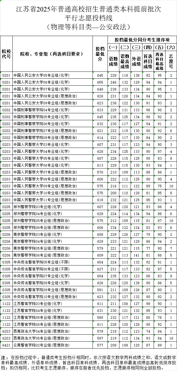 2025年江苏警校录取分数线:历史类最高645分、最低569分,物理类最高655分、最低575分。其中,中国人民公安大学历史类最低分623分、物理类最低分623分;江苏警官学院历史类最低分574分,物理类最低分580分。