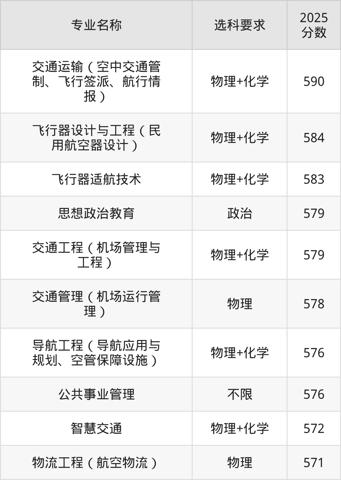 | 飞行器设计与工程(民 用航空器设计) | 物理+化学 | 561 |