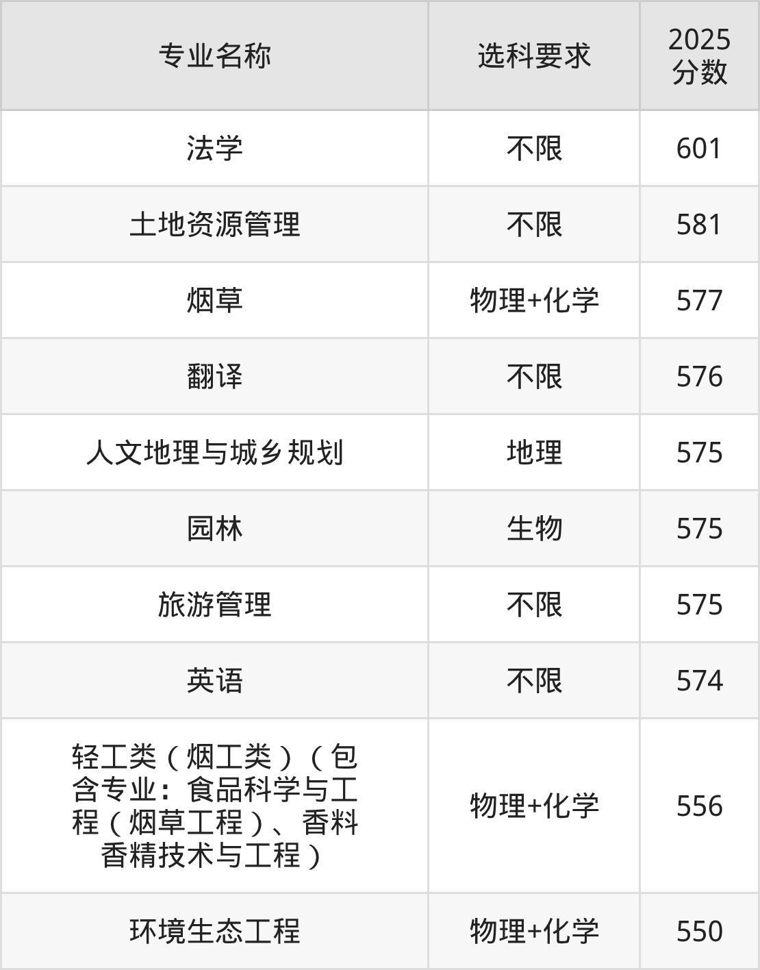 | 专业名称 | 选科要求 | 2025 分数 |
