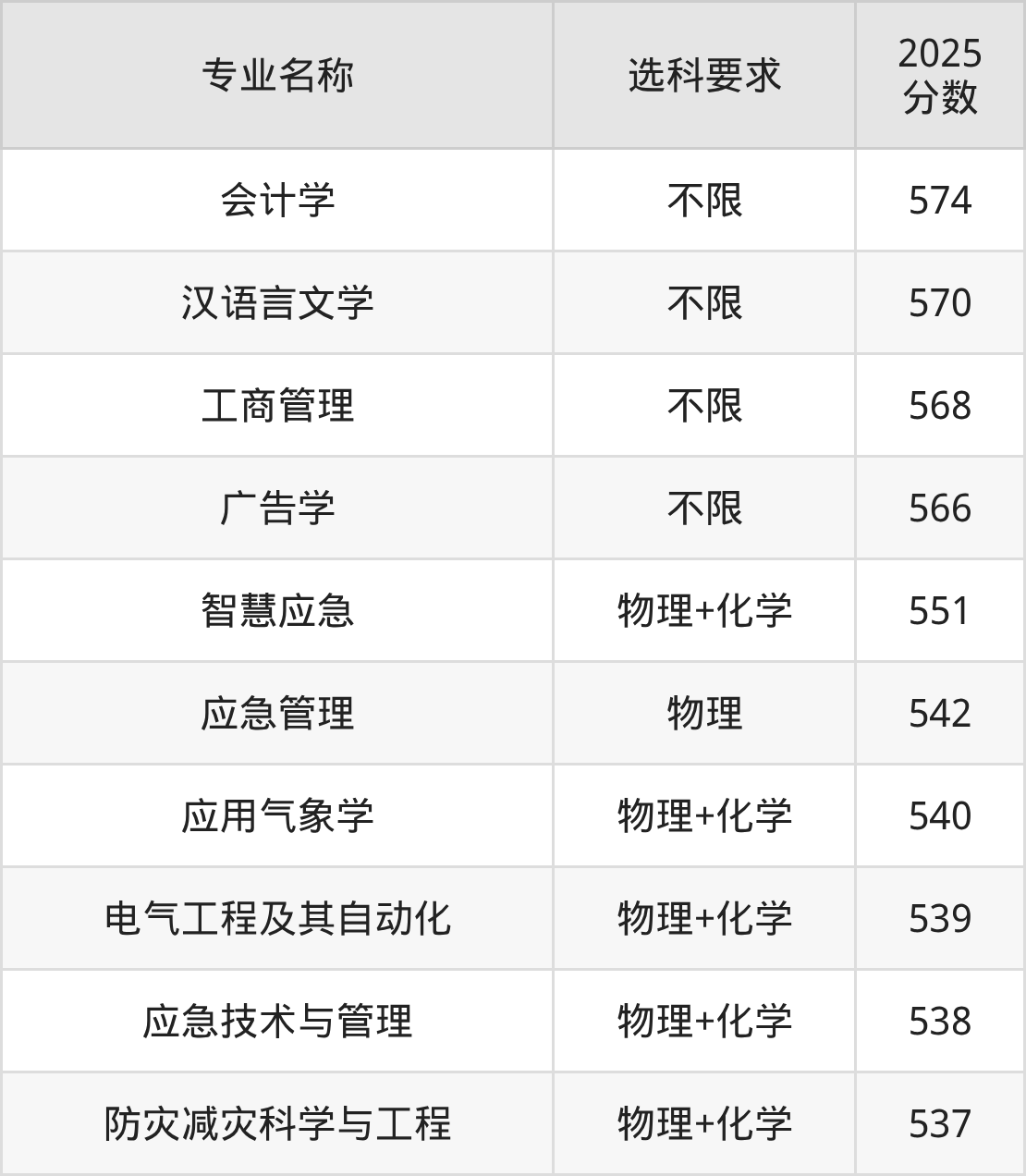 对于浙江高三学生而言,防灾科技学院热门专业是:会计学、汉语言文学、工商管理、广告学、智慧应急、应急管理、应用气象学、电气工程及其自动化、应急技术与管理、防灾减灾科学与工程,2025年在浙江的最低分是537至574。