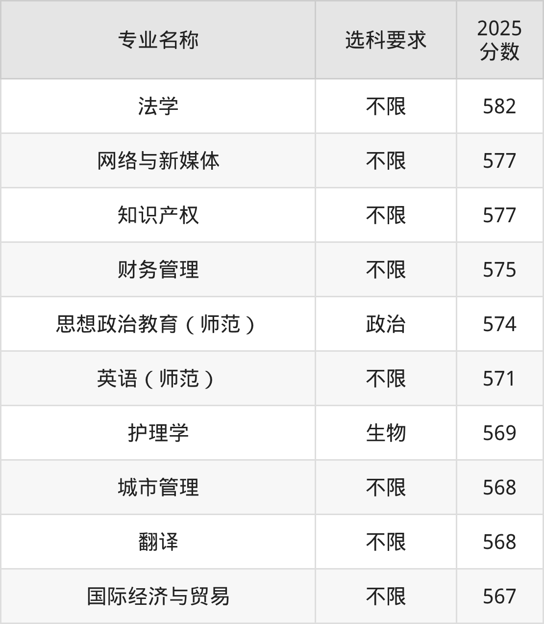 对于浙江高三学生而言,宜春学院热门专业是:法学、网络与新媒体、知识产权、财务管理、思想政治教育、英语、护理学、城市管理、翻译、国际经济与贸易,2025年在浙江的最低分是567至582。