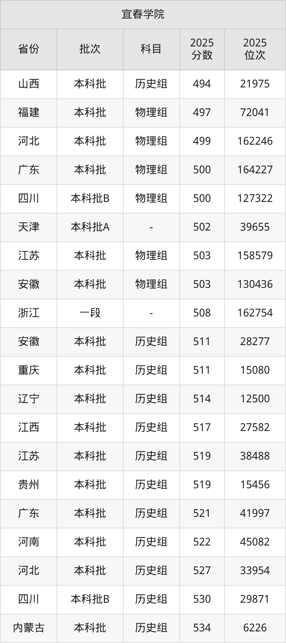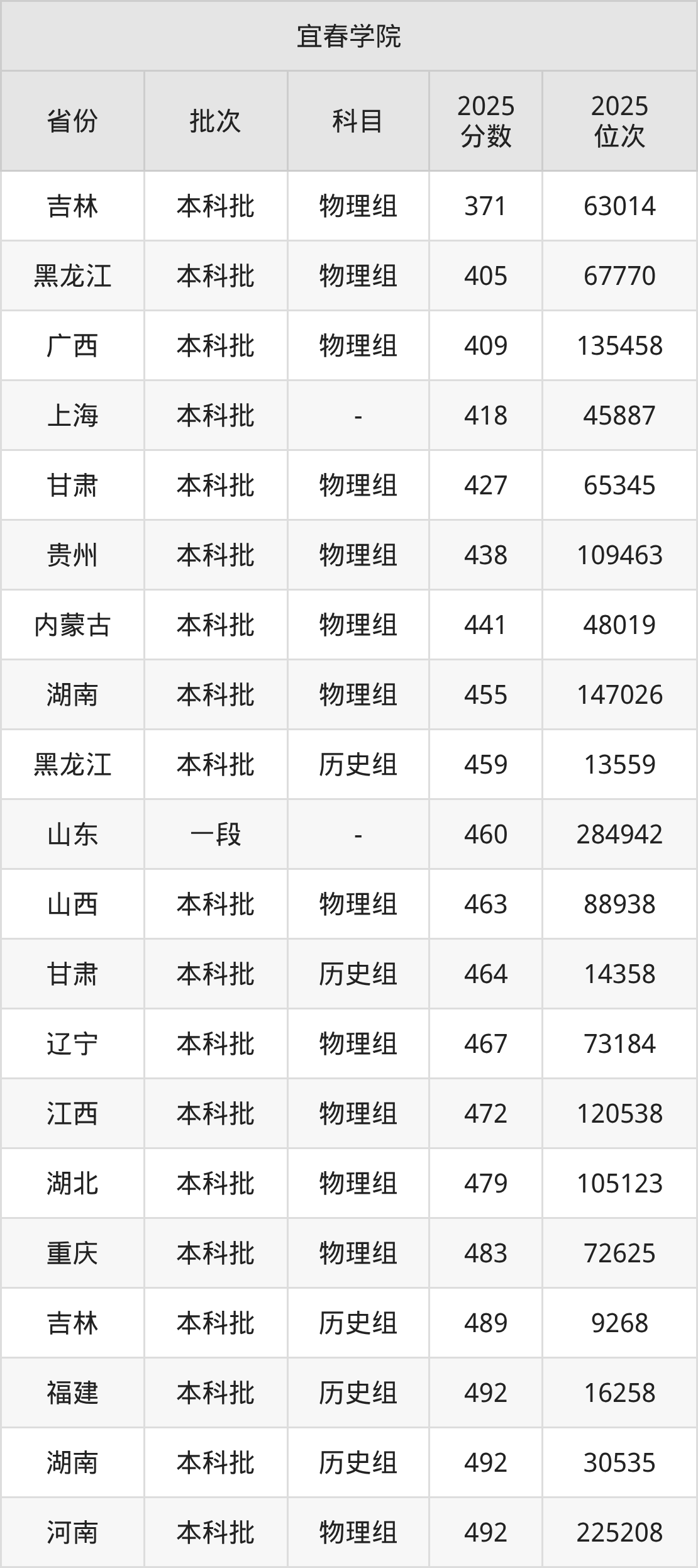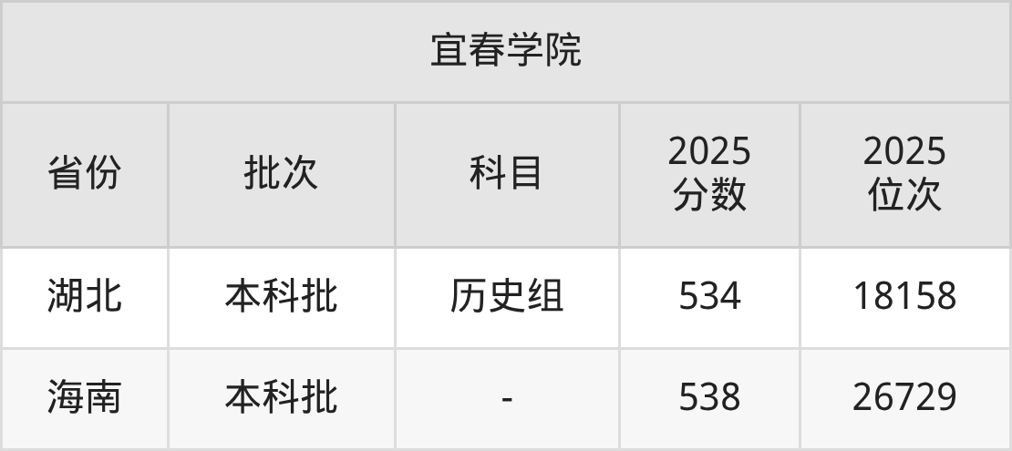 二、宜春学院2025年录取分数线汇总