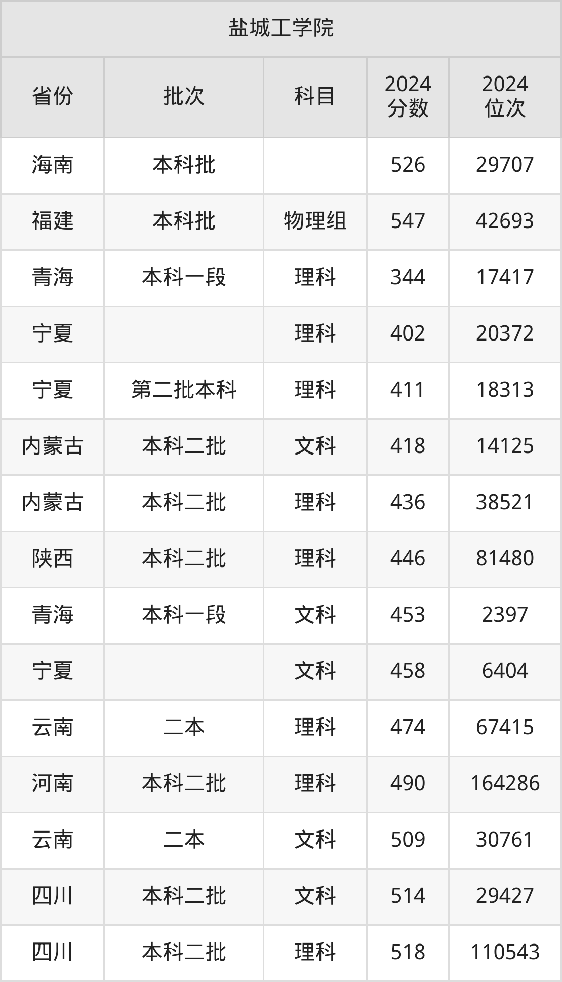 圆梦小编为2025届想要报考盐城工学院的同学整理了:盐城工学院2024年在全国26个省的最低分及录取位次。