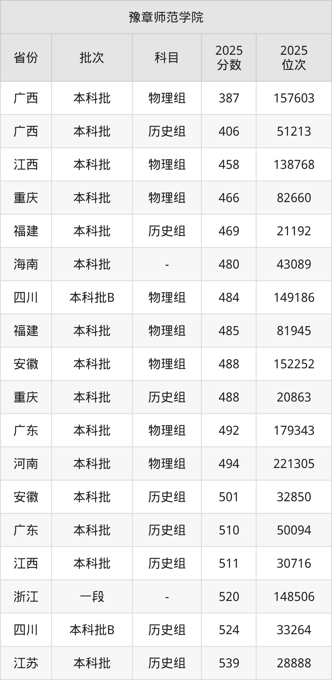 圆梦小编为2026届想要报考豫章师范学院的同学整理了:豫章师范学院2025年在全国11个省的最低分及录取位次。