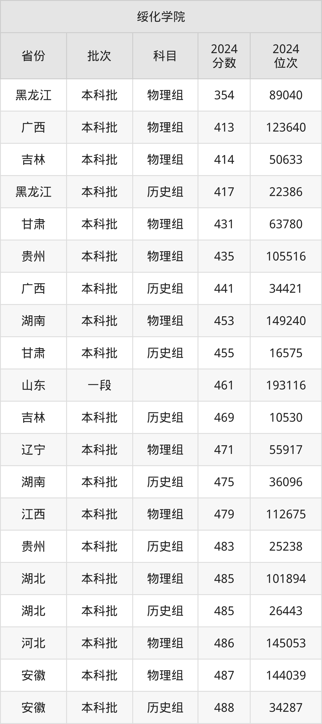 圆梦小编为2025届想要报考绥化学院的同学整理了:绥化学院2024年在全国20个省的最低分及录取位次。