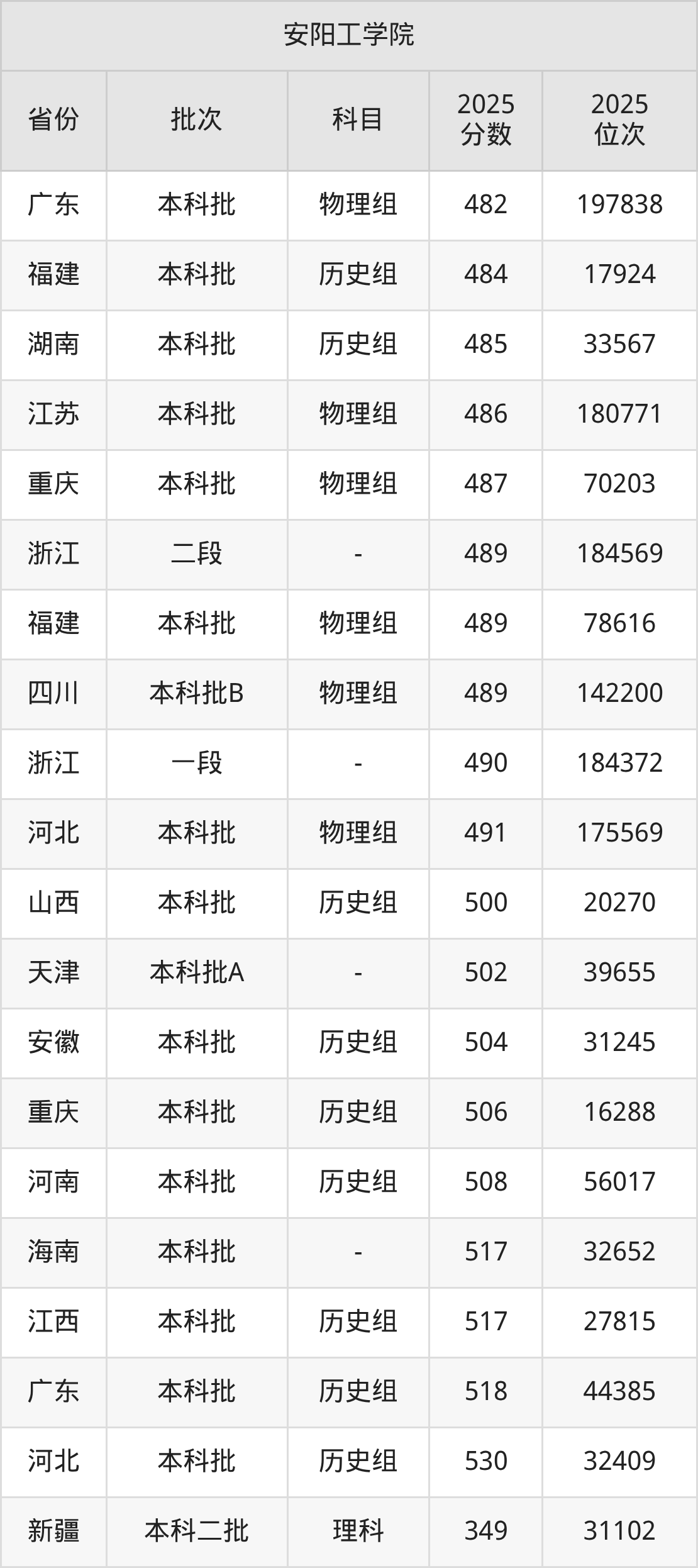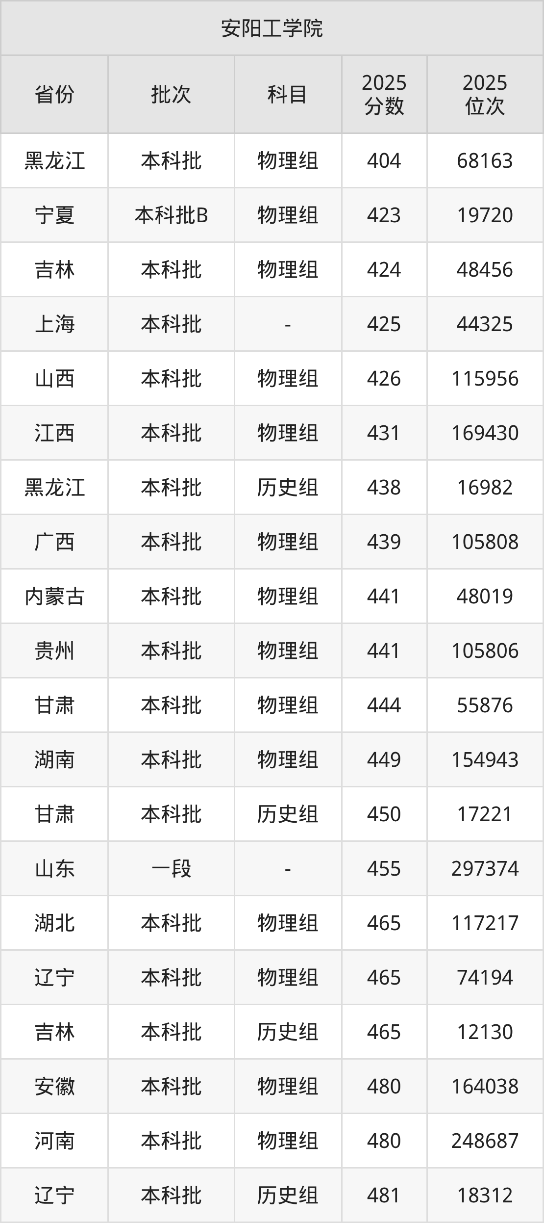 圆梦小编为2026届想要报考安阳工学院的同学整理了:安阳工学院2025年在全国26个省的最低分及录取位次。