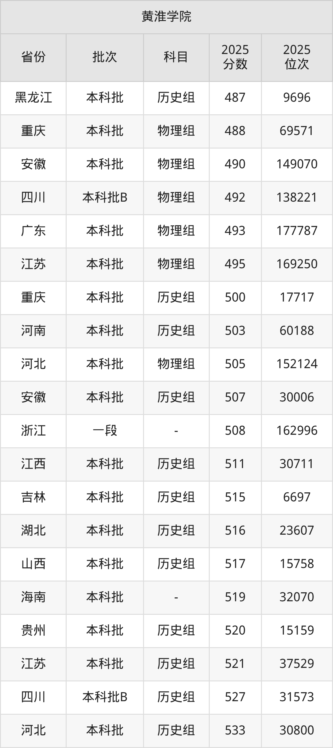 圆梦小编为2026届想要报考黄淮学院的同学整理了:黄淮学院2025年在全国24个省的最低分及录取位次。