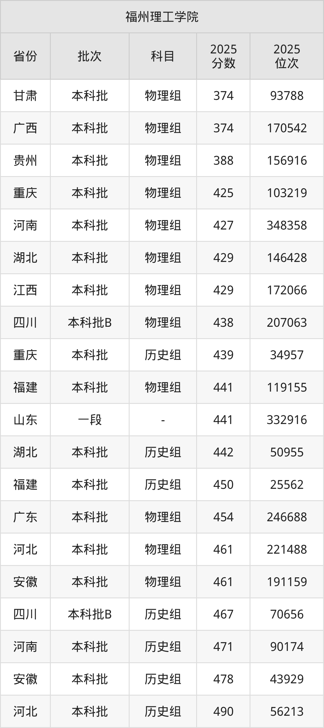 圆梦小编为2026届想要报考福州理工学院的同学整理了:福州理工学院2025年在全国14个省的最低分及录取位次。