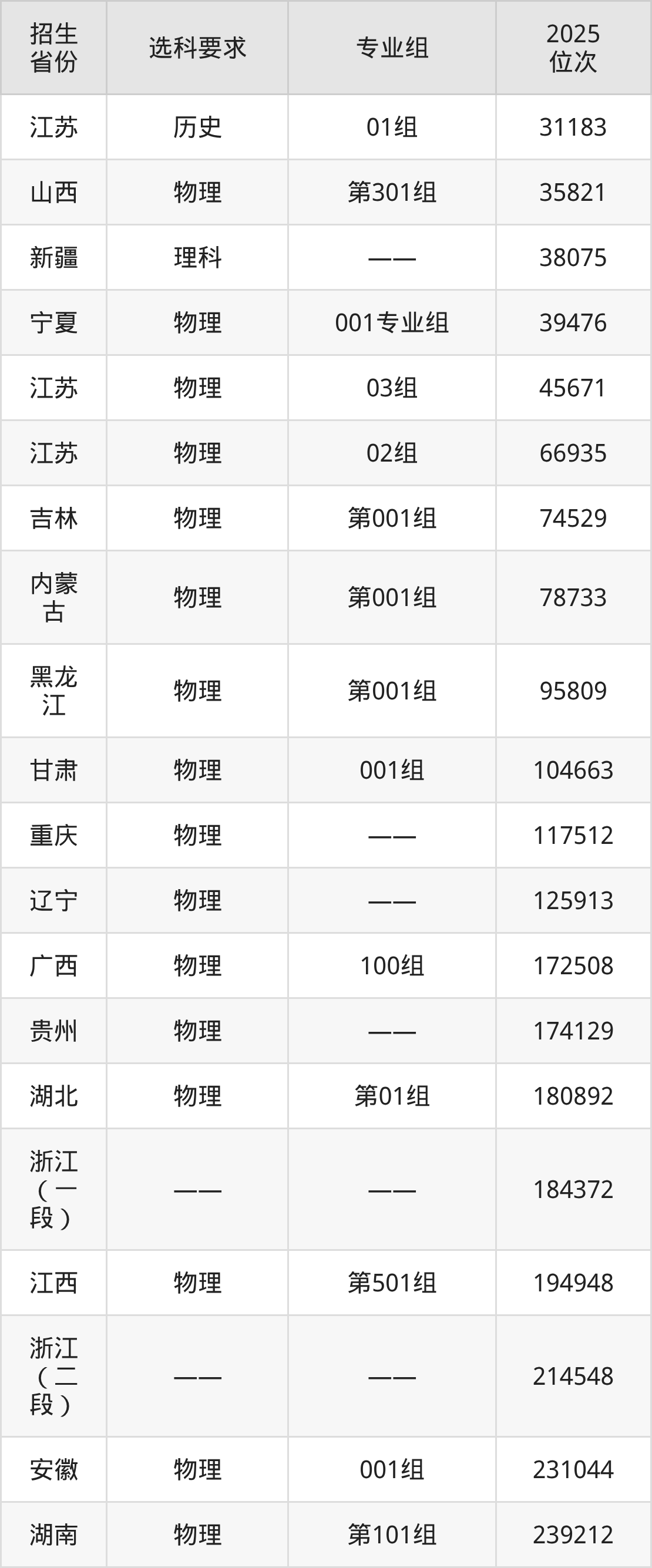 江苏建筑职业技术大学2025年在全国各省的位次差异较大,最高位次是31183位(江苏历史类)、最低位次是368844位(山东)。各省具体位次请看下图: