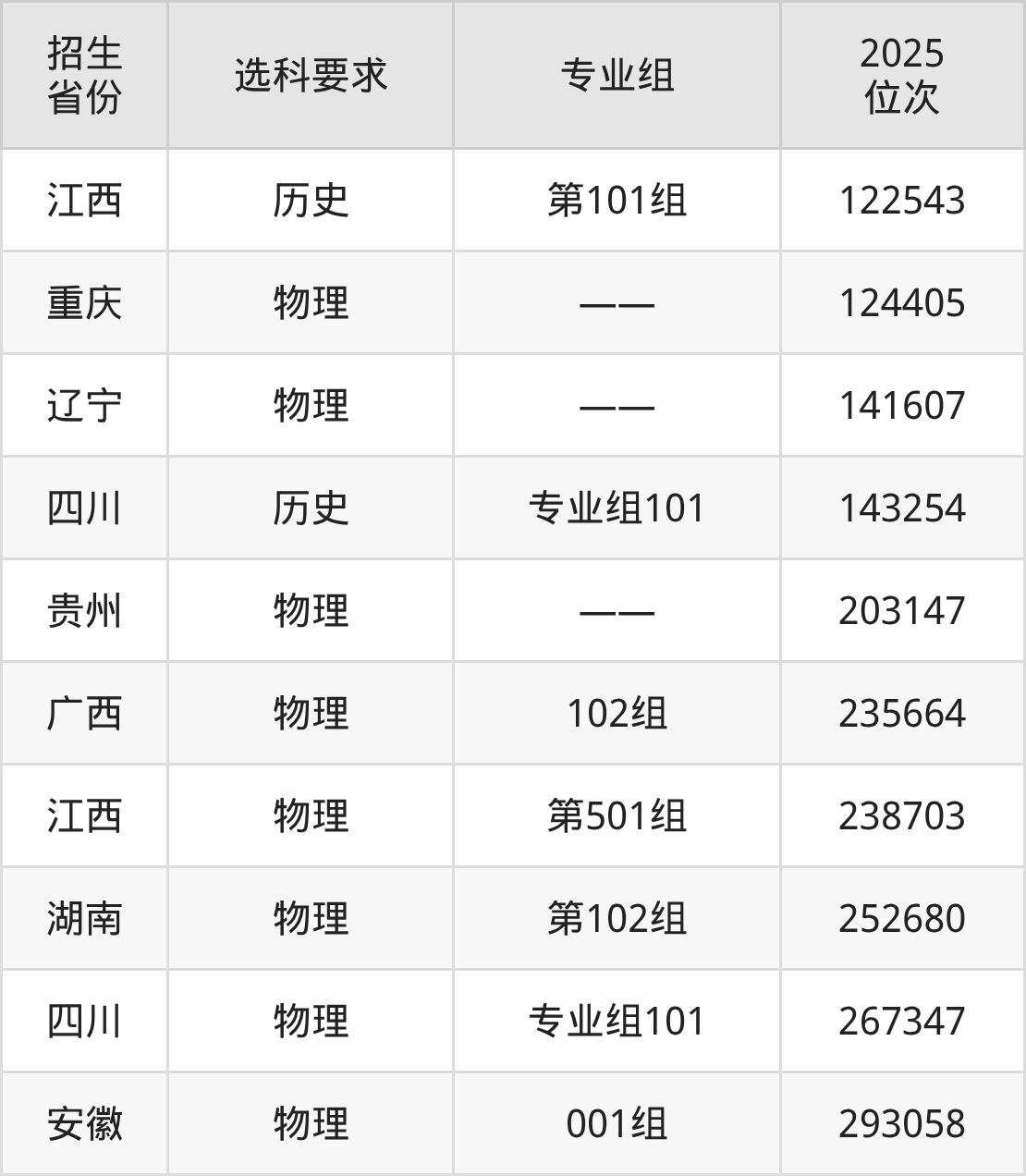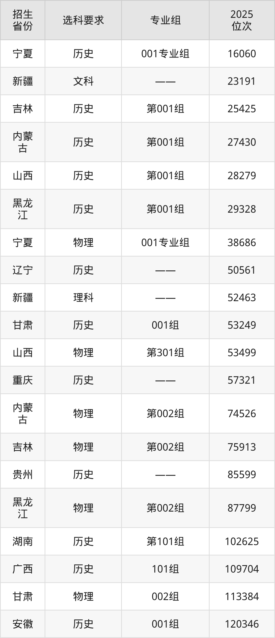 辽宁职业学院2025年在全国各省的位次差异较大,最高位次是16060位(宁夏历史类)、最低位次是293058位(安徽物理类)。各省具体位次请看下图: