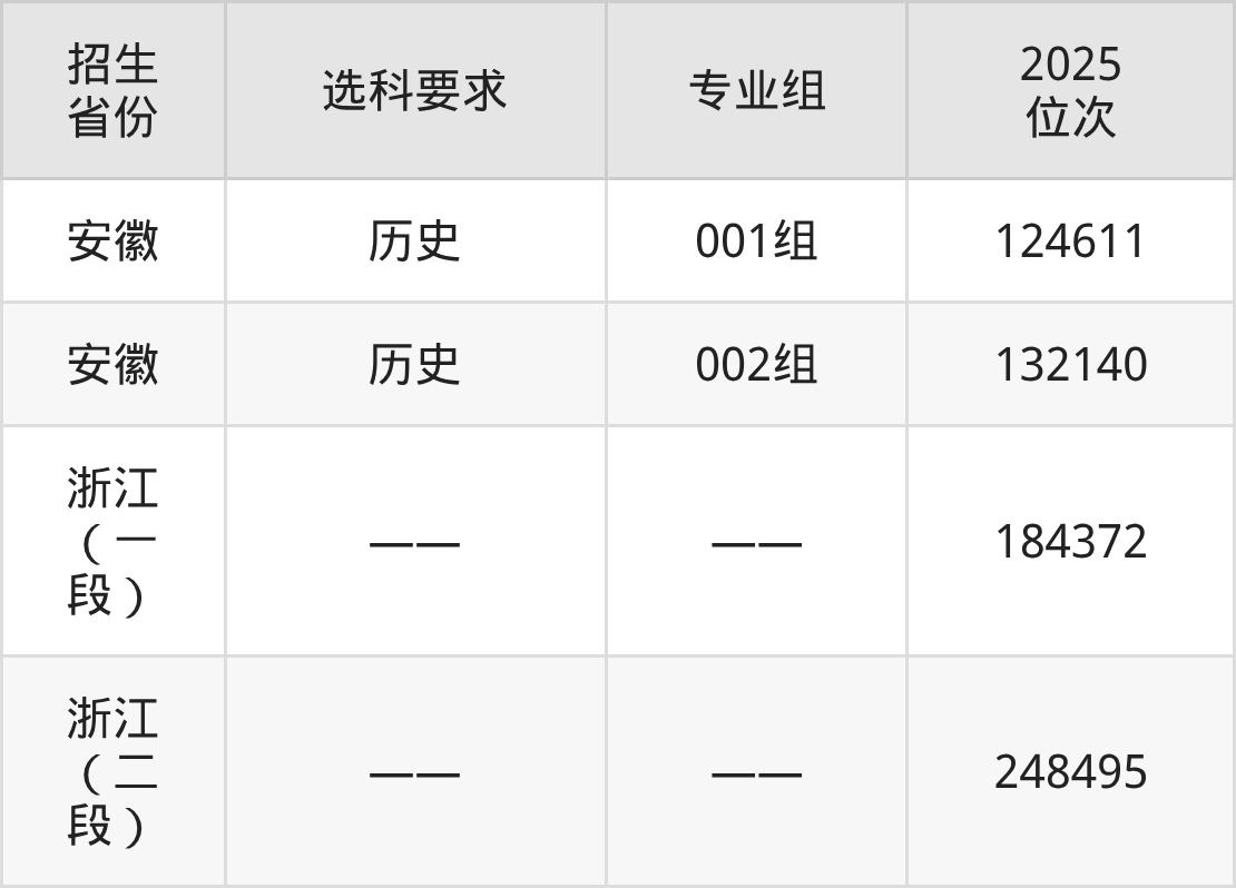 浙江育英职业技术学院2025年在全国各省的位次差异较大,最高位次是124611位(安徽历史类)、最低位次是248495位(浙江)。各省具体位次请看下图: