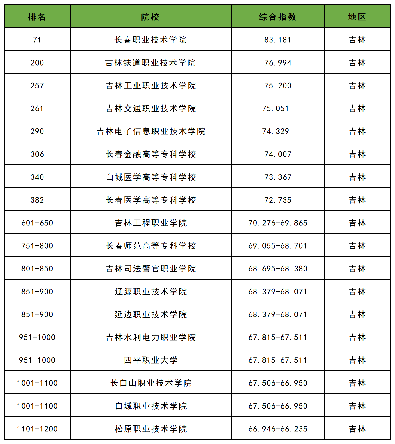 二、吉林省公办专科大学排名