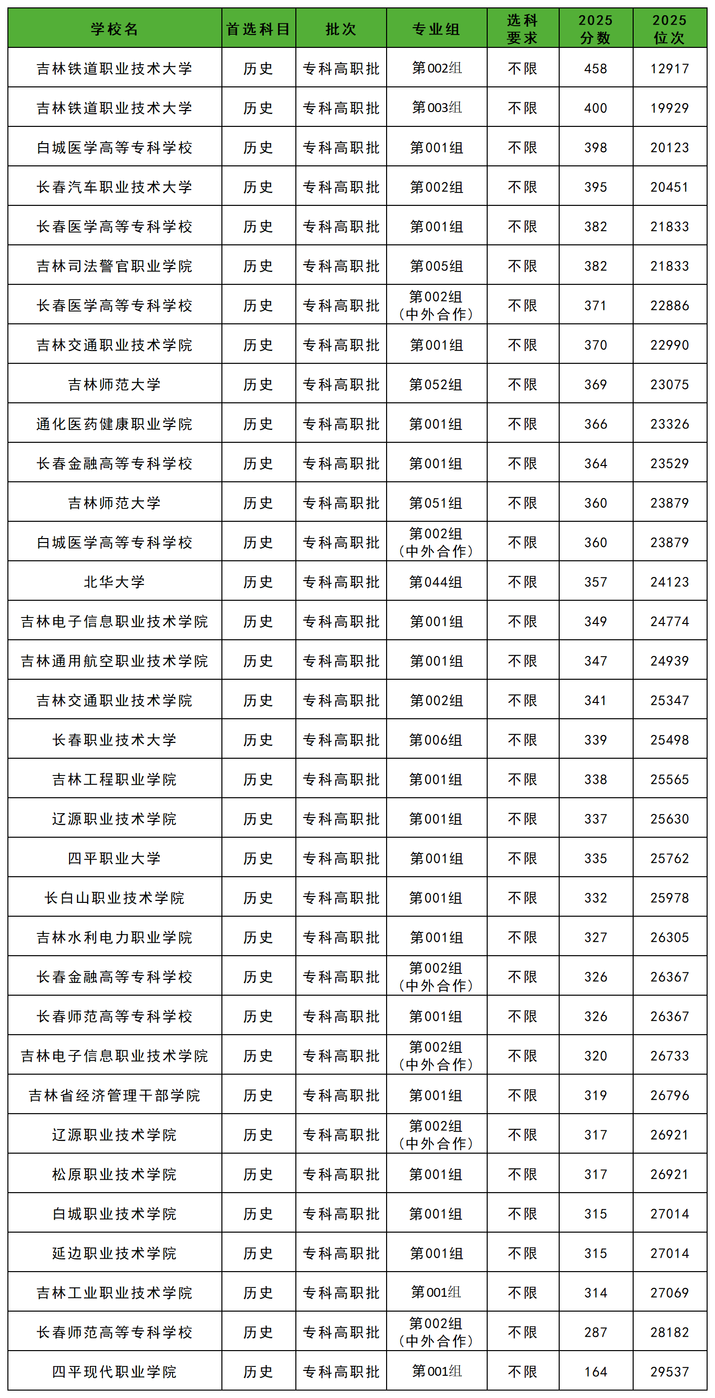 本文整理的是2025年吉林省所有公办专科大学录取分数线,供2026年的考生们参考。