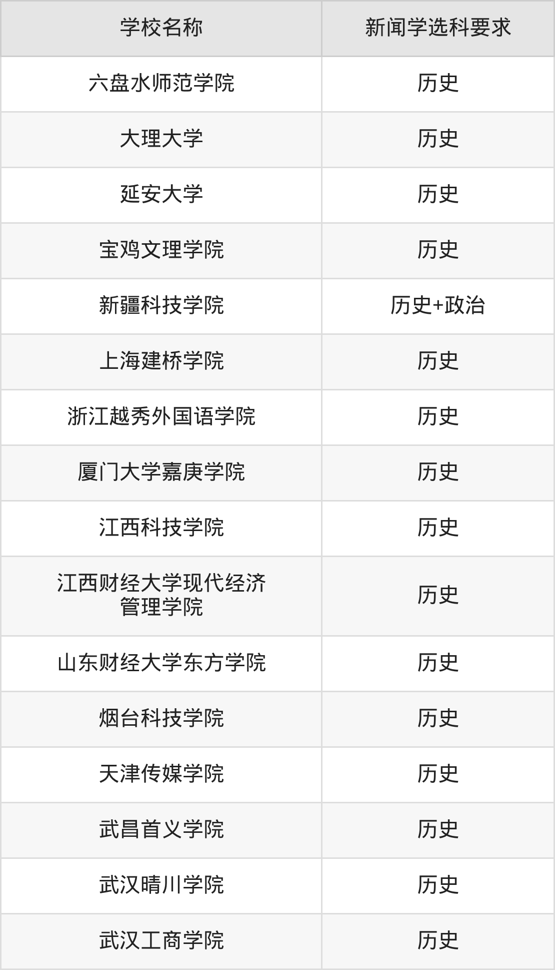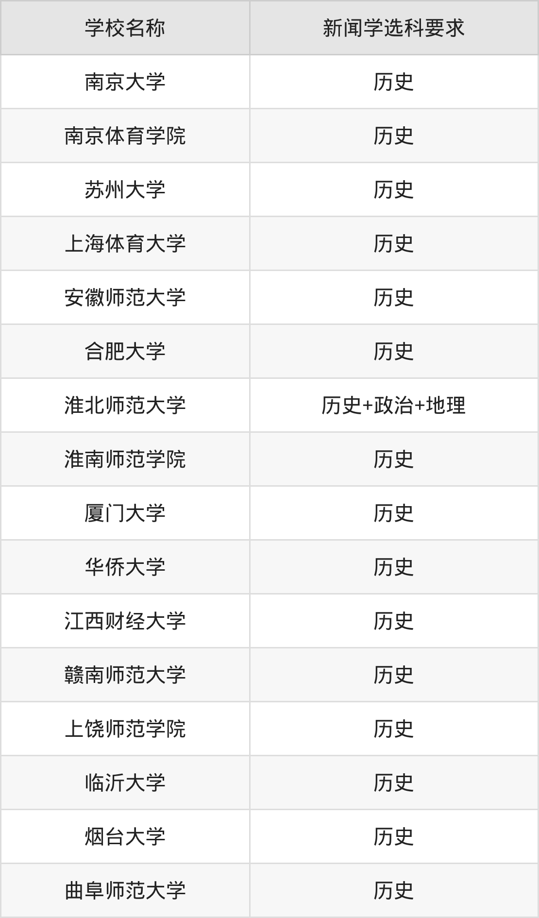 | 学校名称 | 新闻学选科要求 |
