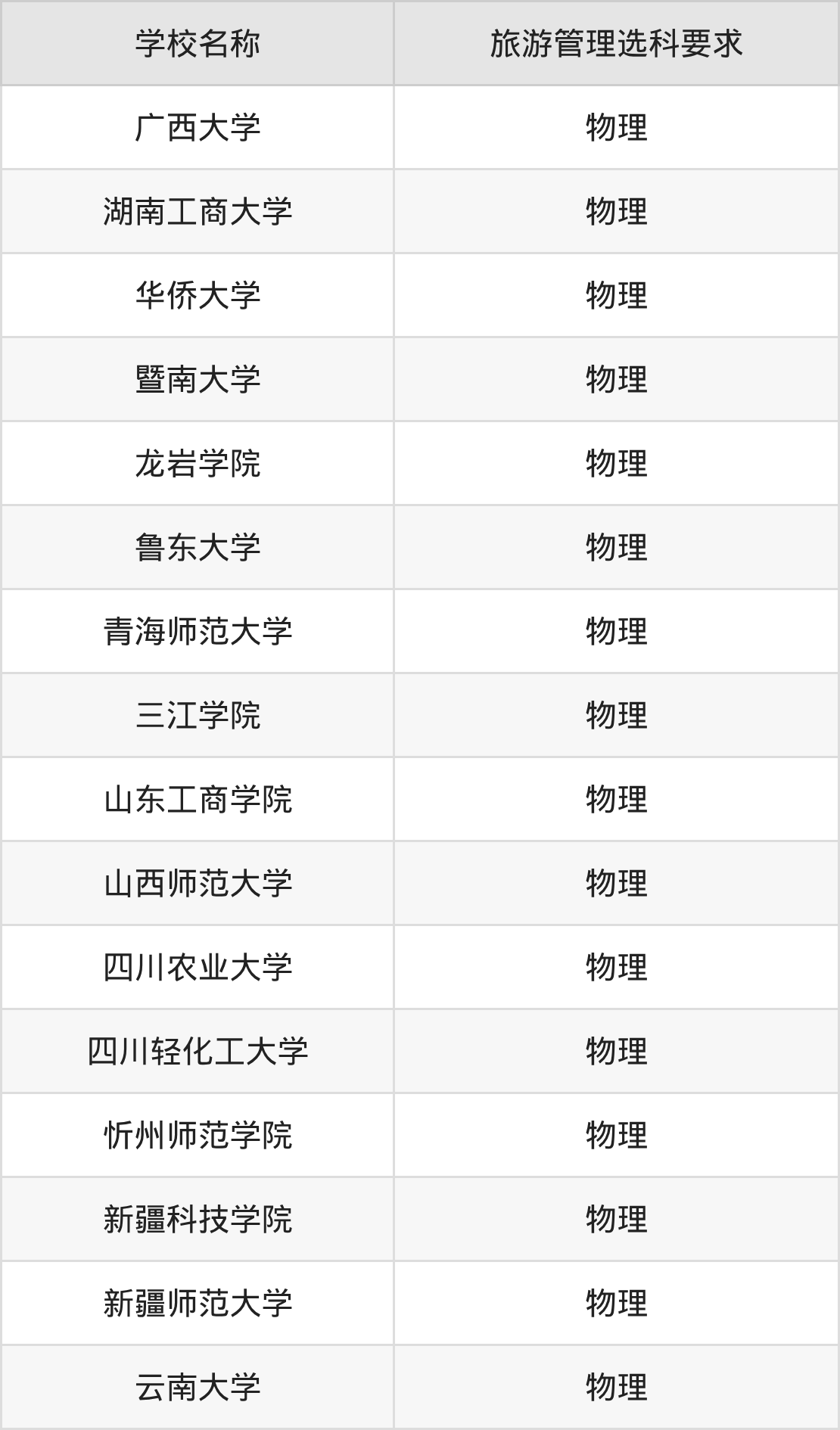 | 学校名称 | 旅游管理选科要求 |