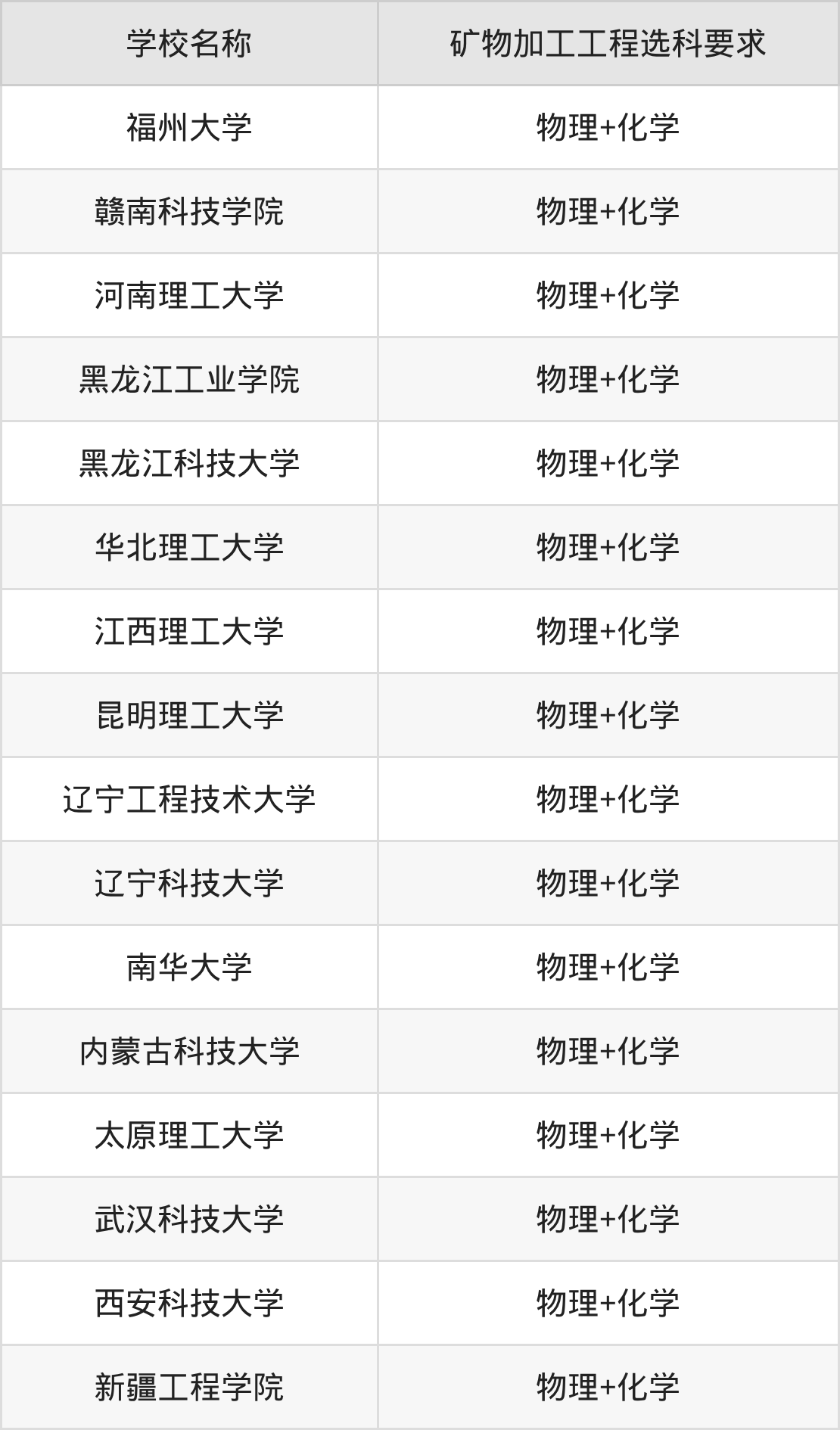 以安徽高考最新招生计划为例进行统计,在不可报的学校中,有18所本科大学的矿物加工工程专业招生时,要求考生必选“物理+化学”。