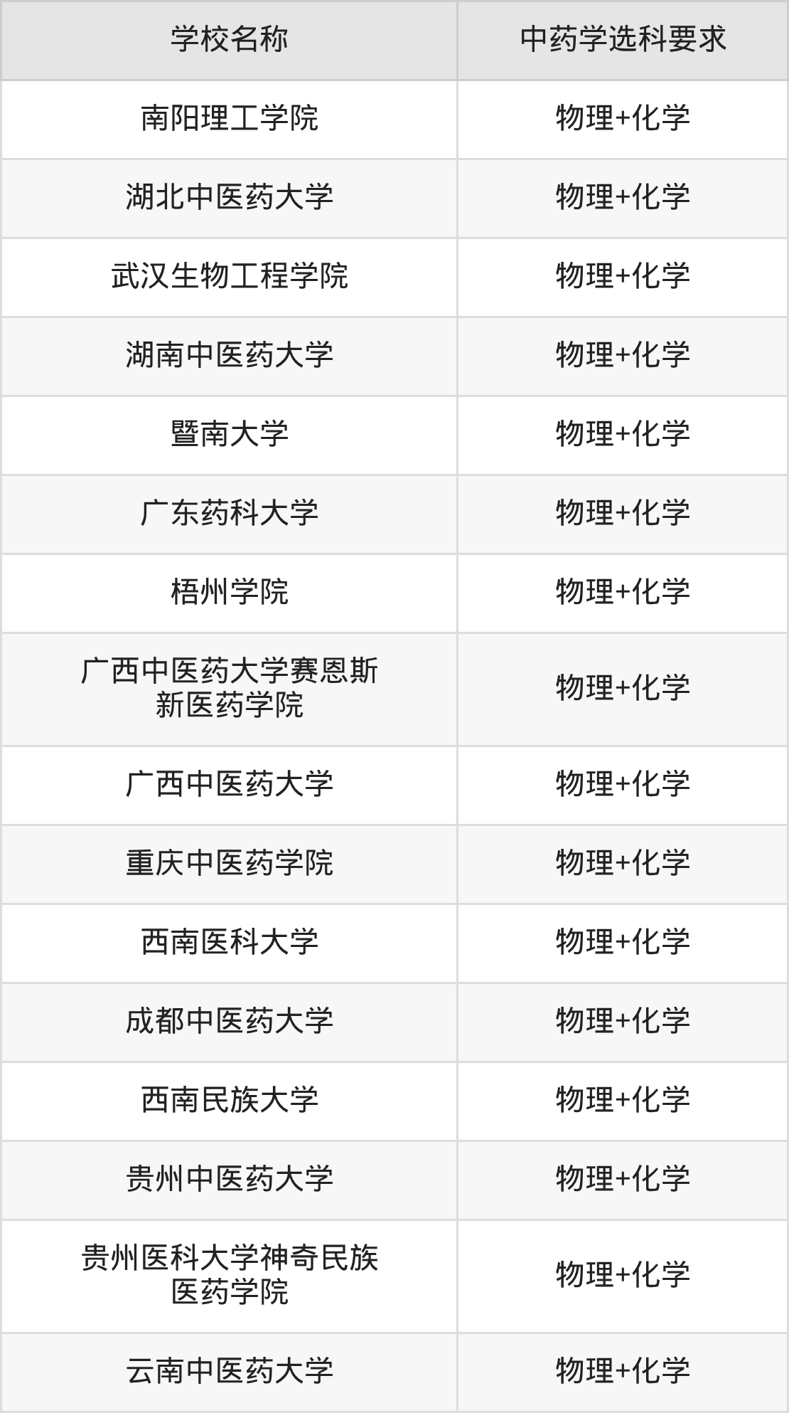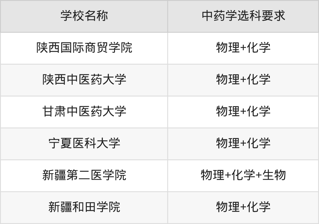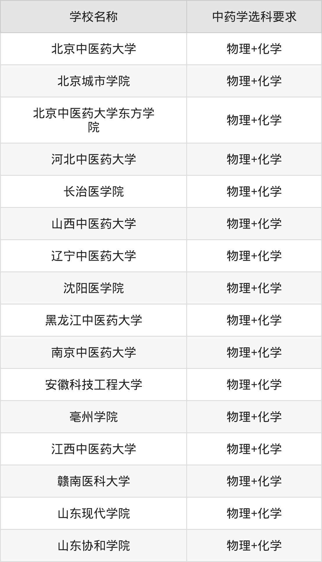 以重庆高考最新招生计划为例进行统计,在不可报的学校中,有37所本科大学的中药学专业招生时,要求考生必选“物理+化学”,有1所本科大学的中药学专业招生时,要求考生必选“物理+化学+生物”。