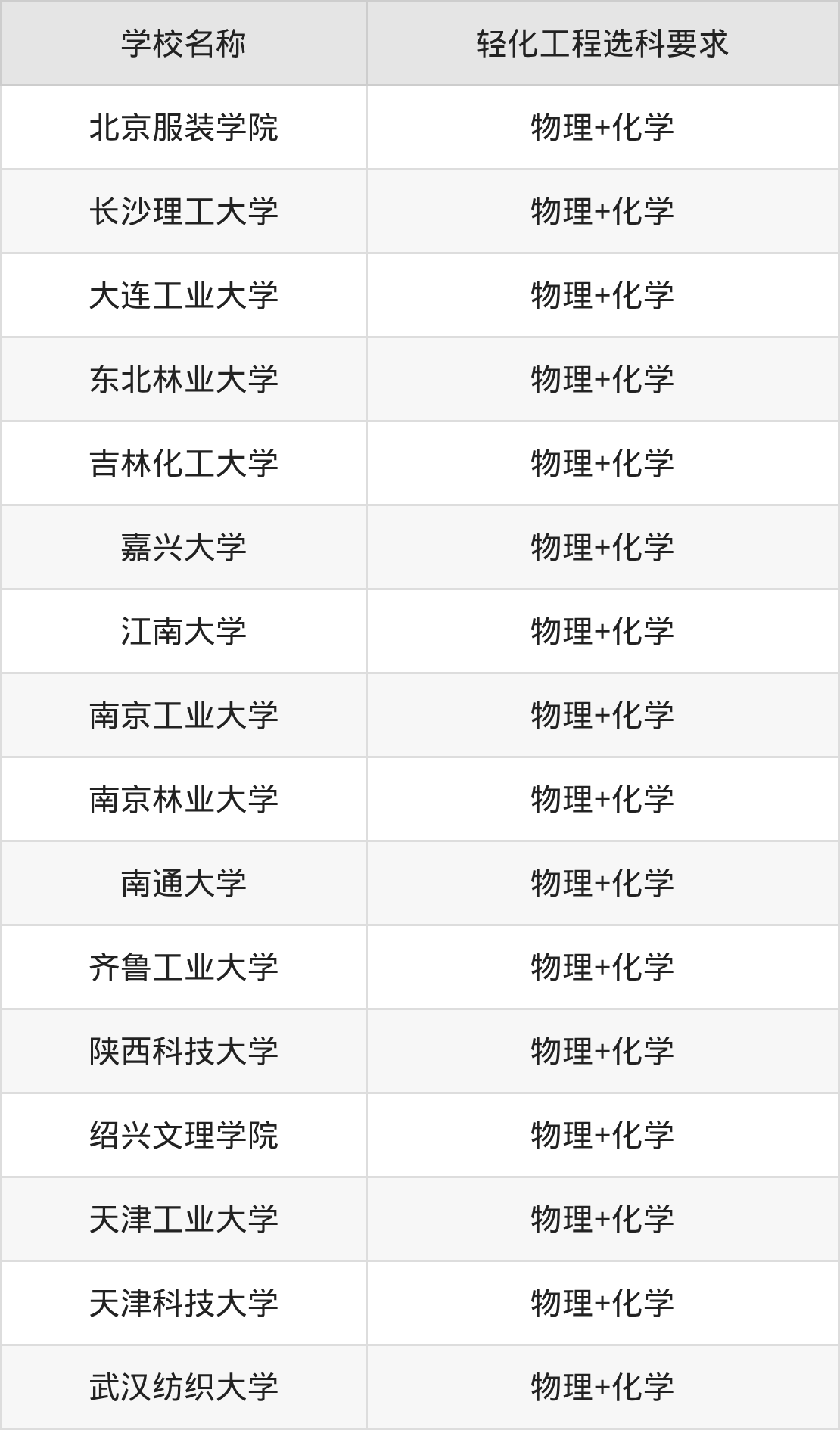 原因是:在安徽高考以“轻化工程”专业名称招生的21所本科大学中,有21所大学要求高考生必选“物理+化学”。