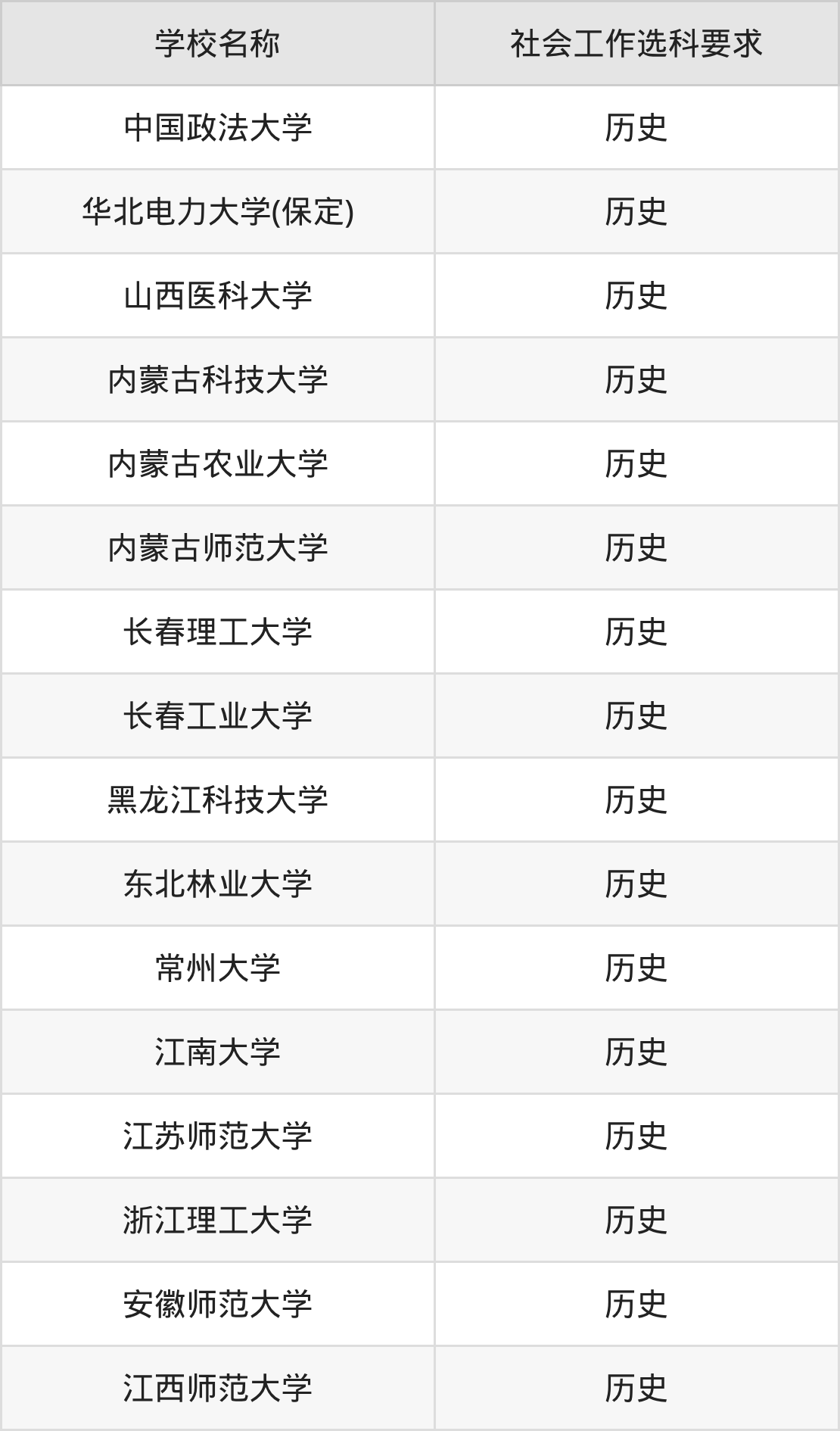 物化生组合的考生不符合这部分学校的选科要求,所以不可以报考这些学校的社会工作专业。比如:中国政法大学、华北电力大学(保定)、山西医科大学、内蒙古科技大学、内蒙古农业大学、内蒙古师范大学、长春理工大学等。
