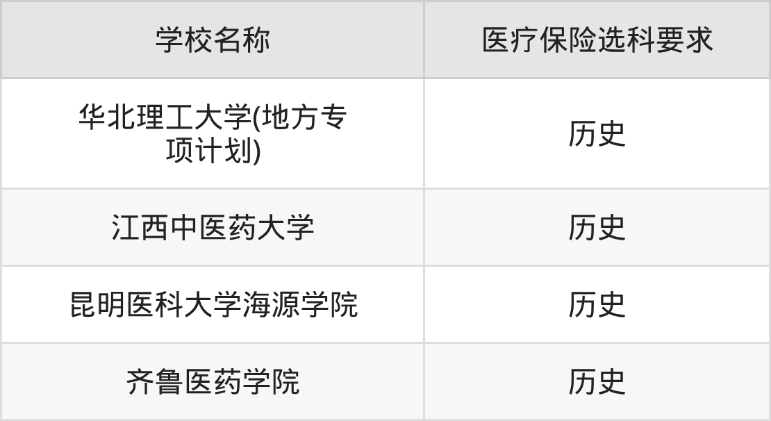 | 学校名称 | 医疗保险选科要求 |