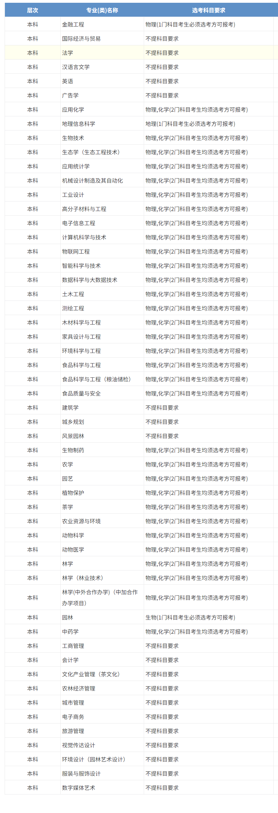 不提选科要求(对应19个专业):国际经济与贸易、法学、汉语言文学、英语、广告学等。