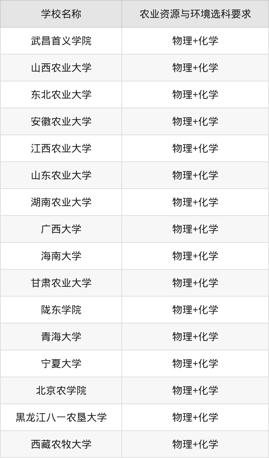 以湖北高考最新招生计划为例进行统计,在不可报的学校中,有16所本科大学的农业资源与环境专业招生时,要求考生必选“物理+化学”。