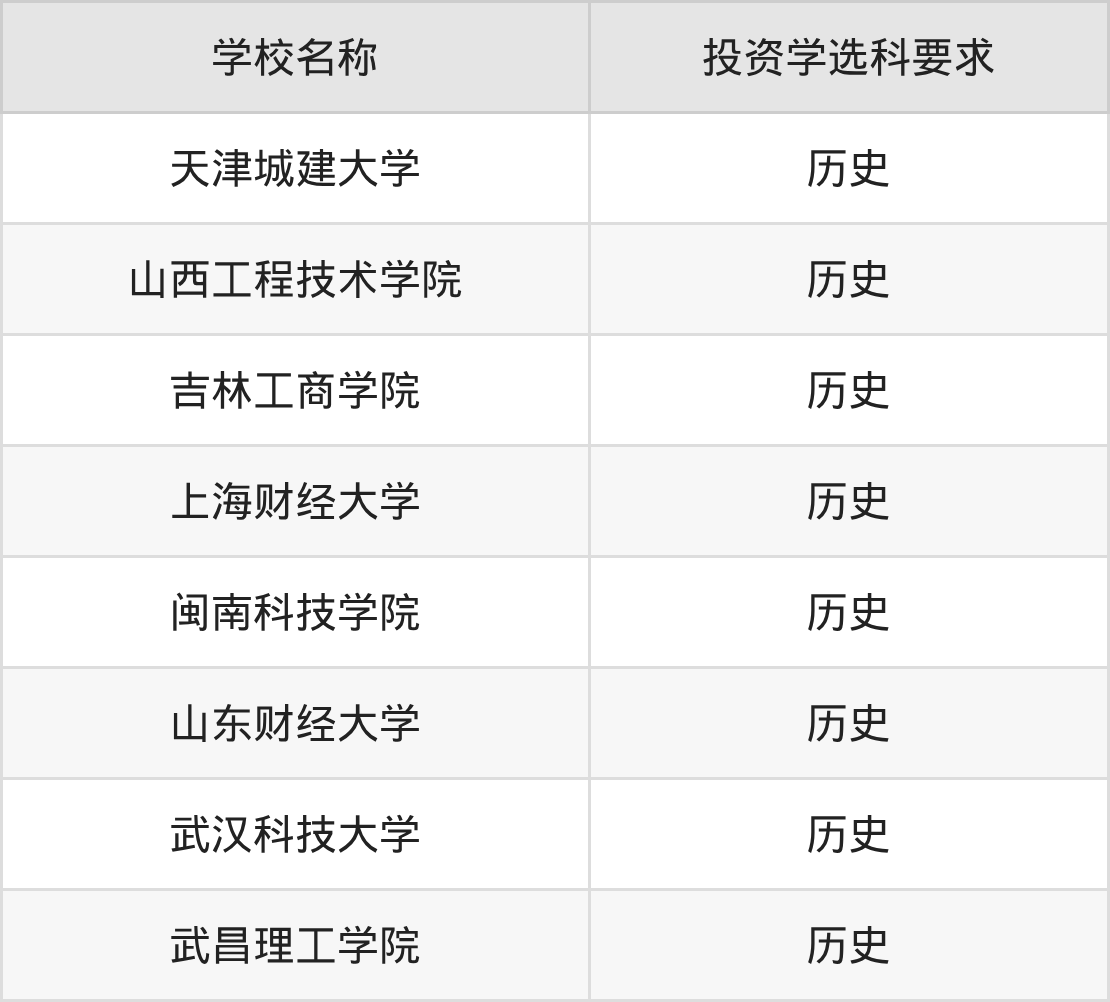 以湖南高考最新招生计划为例进行统计,在不可报的学校中,有8所本科大学的投资学专业招生时,要求考生必选“历史”。