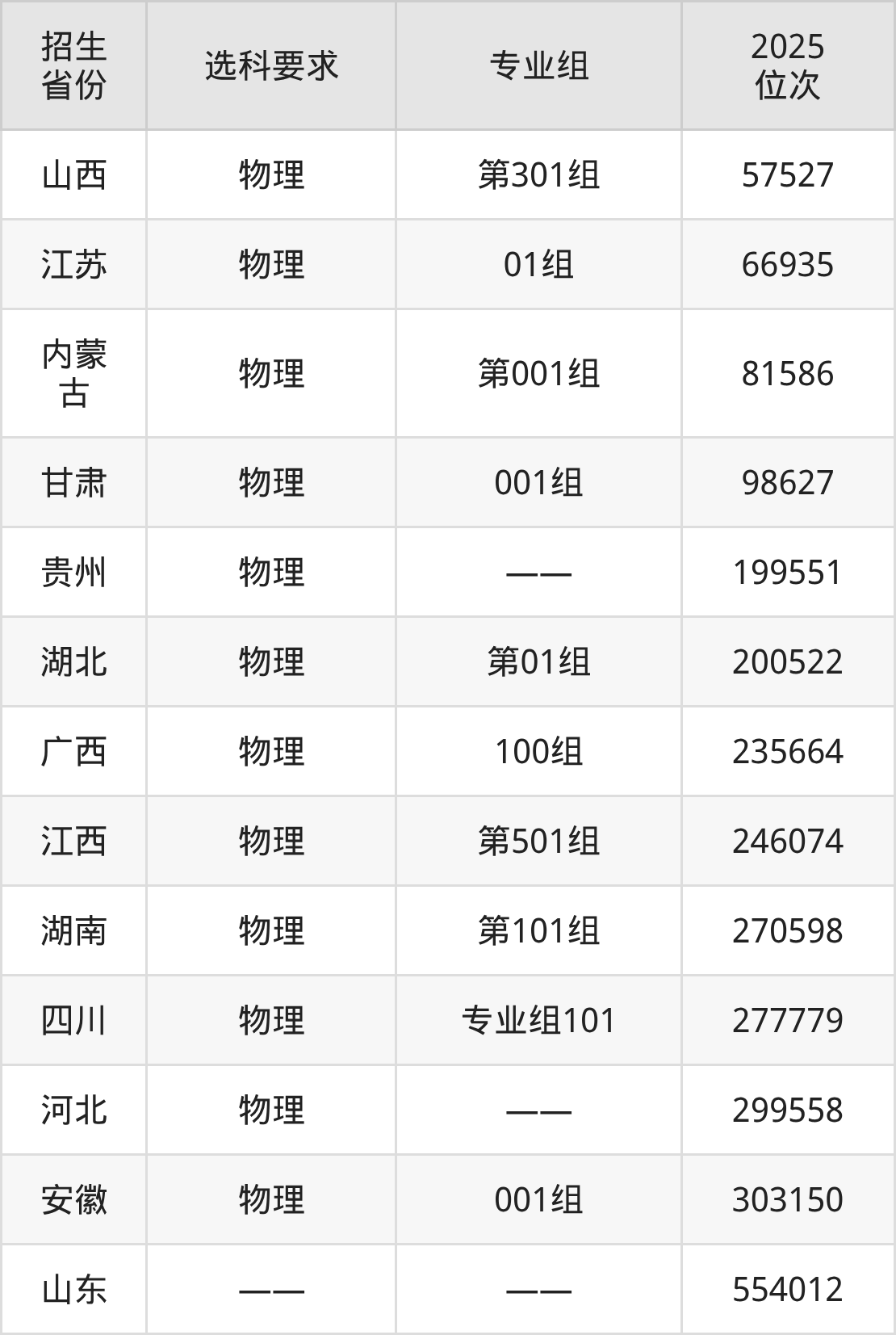 濮阳石油化工职业技术学院2025年在全国各省的位次差异较大,最高位次是57527位(山西物理类)、最低位次是554012位(山东)。各省具体位次请看下图:
