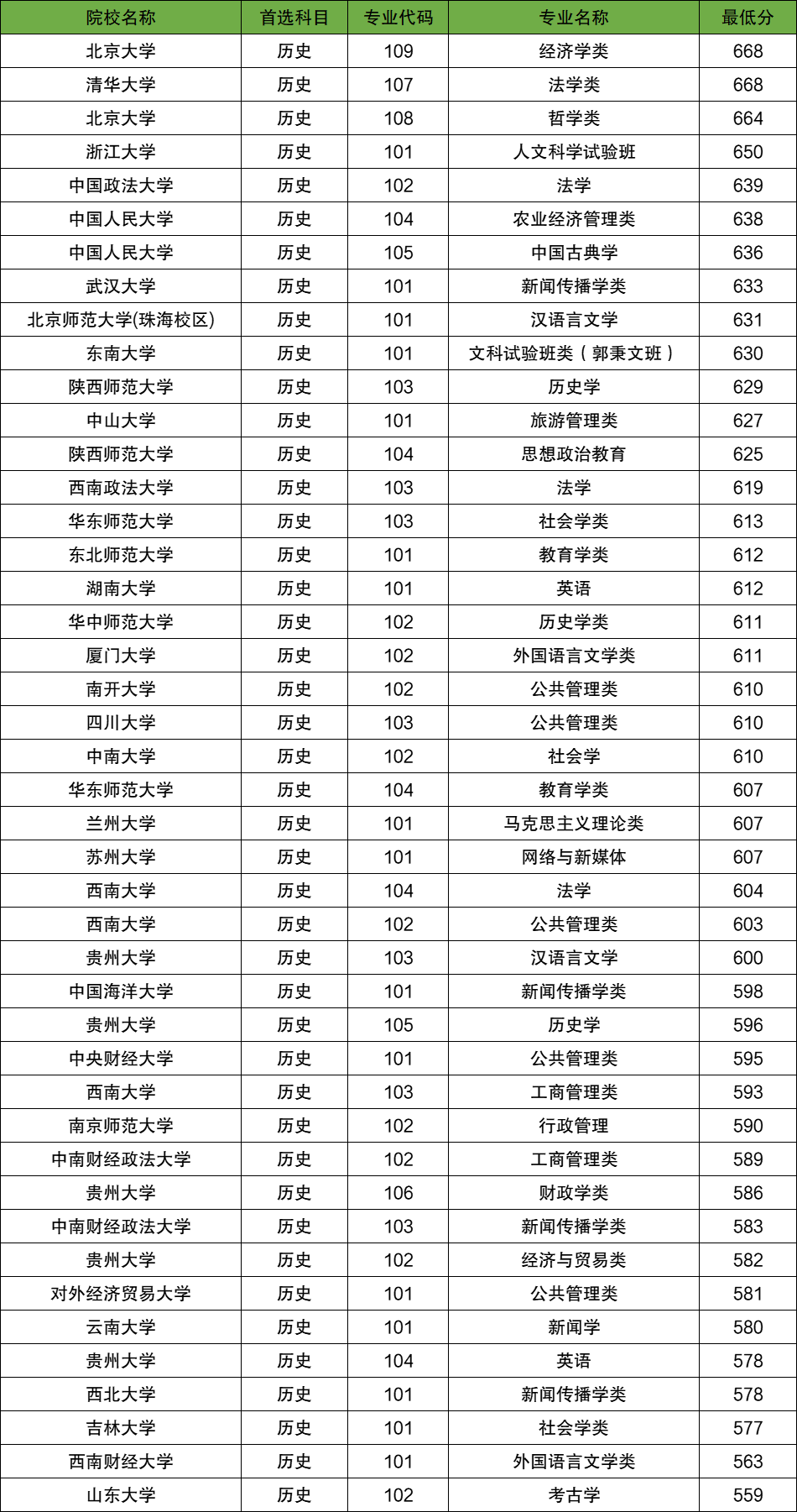 在贵州历史类招生中,400多分上不了高校专项计划院校,最低都要559分才能上,所有院校专业录取分数线在559分-668分之间。