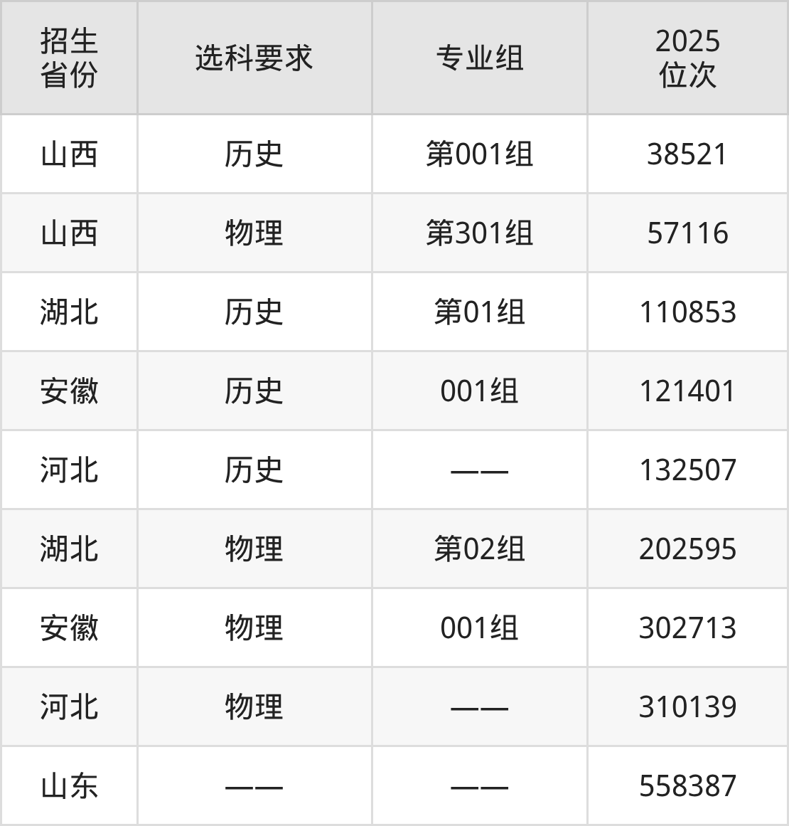 兰考三农职业学院2025年在全国各省的位次差异较大,最高位次是38521位(山西历史类)、最低位次是558387位(山东)。各省具体位次请看下图: