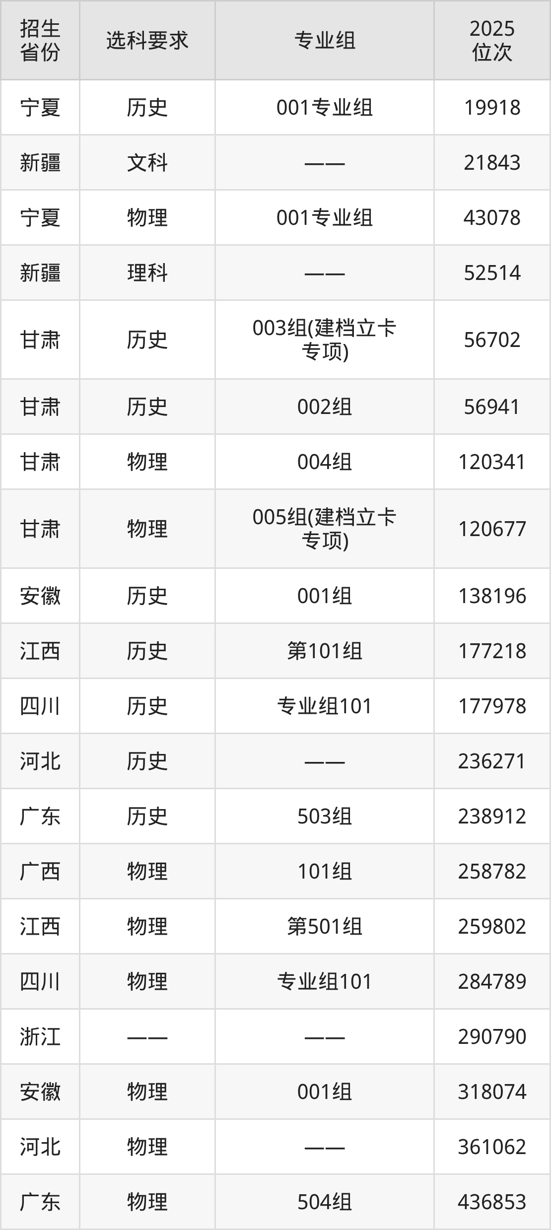 白银希望职业技术学院2025年在全国各省的位次差异较大,最高位次是19918位(宁夏历史类)、最低位次是679371位(山东)。各省具体位次请看下图: