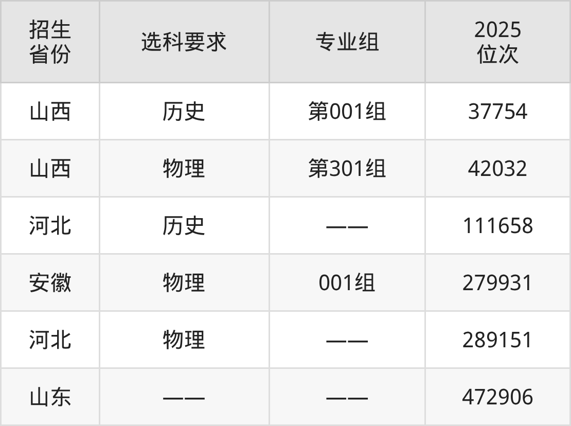 邯郸科技职业学院2025年在全国各省的位次差异较大,最高位次是37754位(山西历史类)、最低位次是472906位(山东)。各省具体位次请看下图: