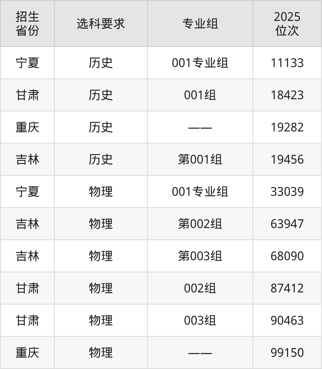 武汉海事职业学院2025年在全国各省的位次差异较大,最高位次是11133位(宁夏历史类)、最低位次是99150位(重庆物理类)。各省具体位次请看下图: