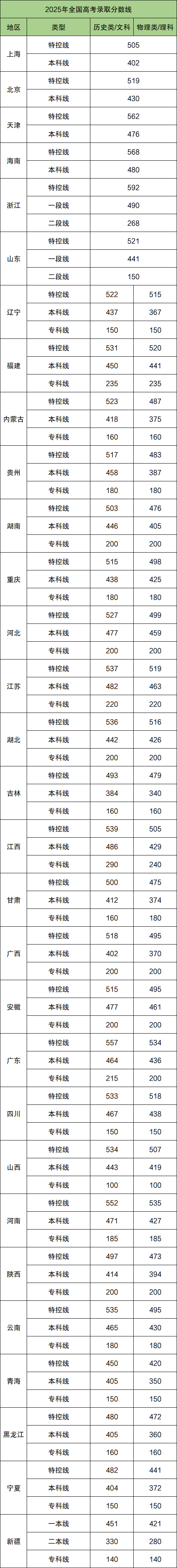 二、2025高考录取分数线一览表
