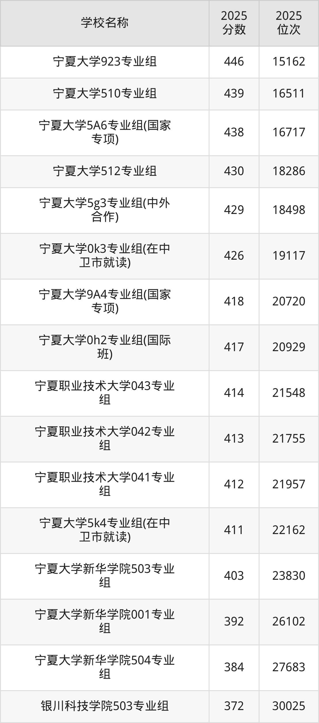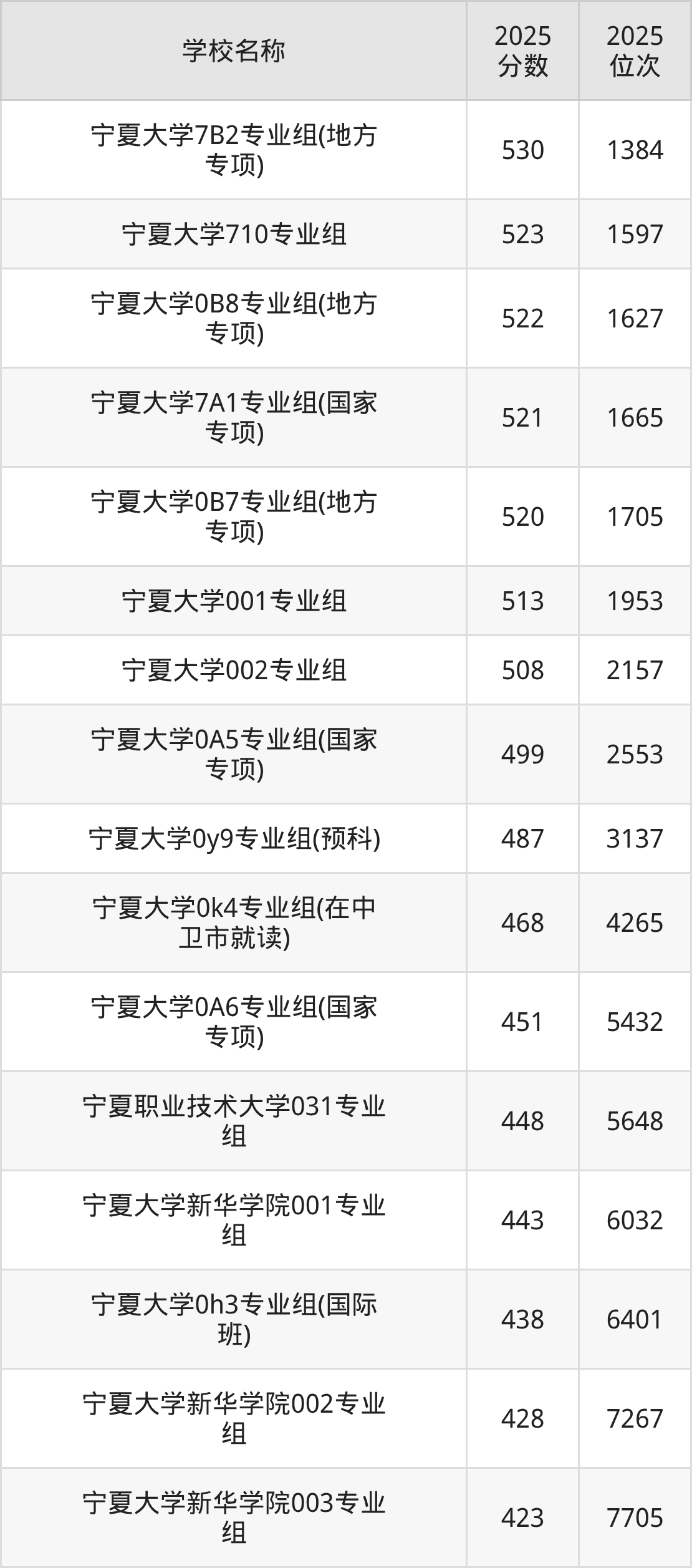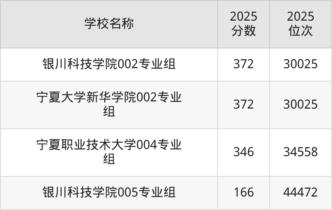 下文为2025年宁夏回族自治区综合类大学在宁夏历史类录取分数线和位次排名表,供大家参考: