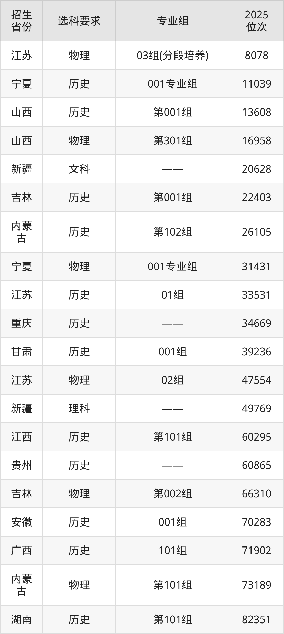 江苏电子信息职业学院2025年在全国各省的位次差异较大,最高位次是8078位(江苏物理类)、最低位次是357854位(山东)。各省具体位次请看下图: