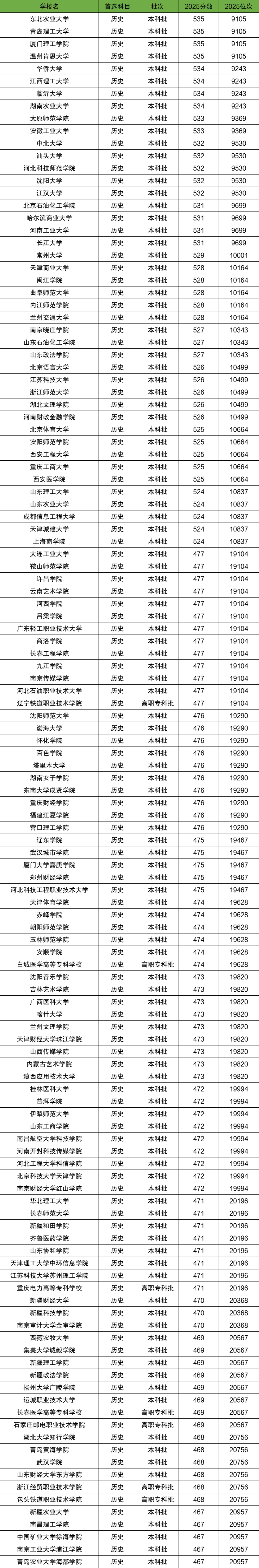 2025年全国大学历史类在辽宁录取最低位次范围为22名~56307名,其中:
