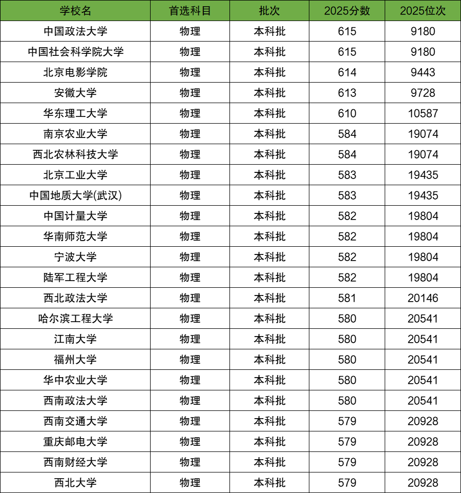 辽宁物理类录取位次最低的一本大学是中国医科大学、嘉兴大学、曲阜师范大学等,2025年最低录取分数对应位次为49156名(对应515分);录取位次最低的二本大学是内蒙古农业大学、内蒙古医科大学、辽宁对外经贸学院等,2025年最低录取分数对应位次为118109名(对应367分)。