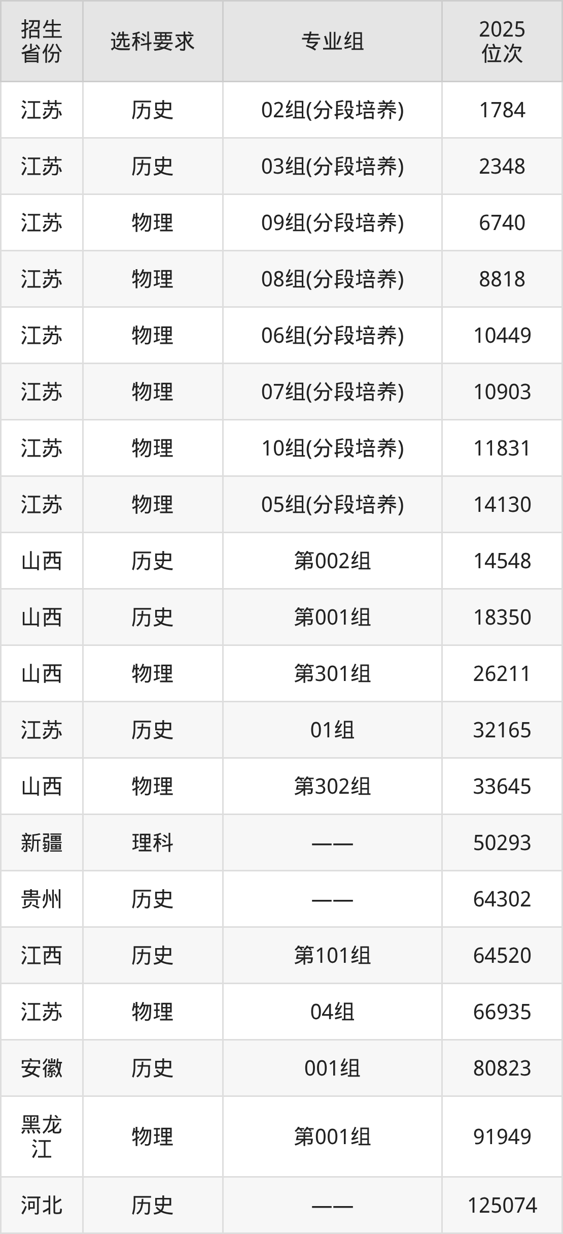 江苏安全技术职业学院2025年在全国各省的位次差异较大,最高位次是1784位(江苏历史类)、最低位次是402057位(山东)。各省具体位次请看下图: