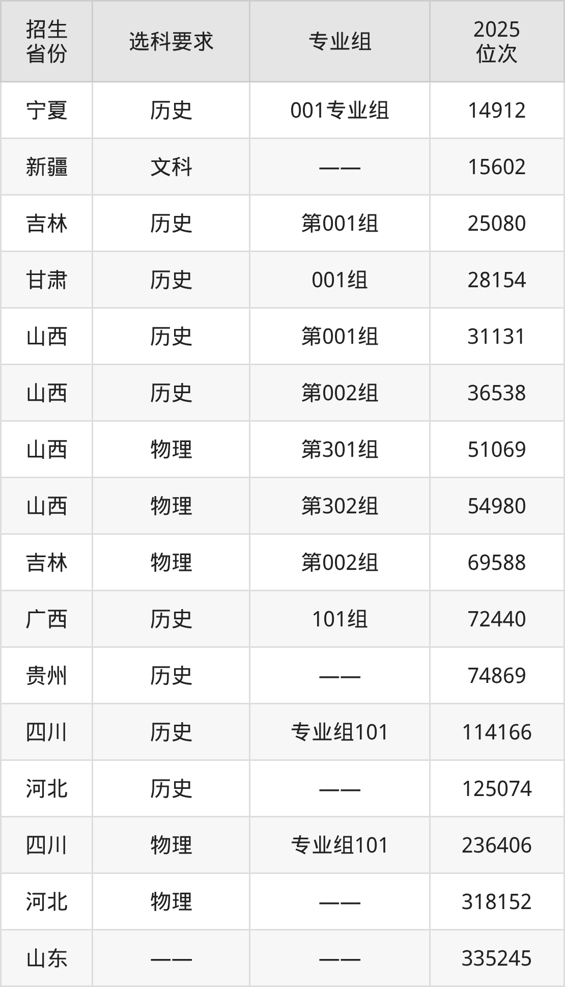 忻州职业技术学院2025年在全国各省的位次差异较大,最高位次是14912位(宁夏历史类)、最低位次是335245位(山东)。各省具体位次请看下图: