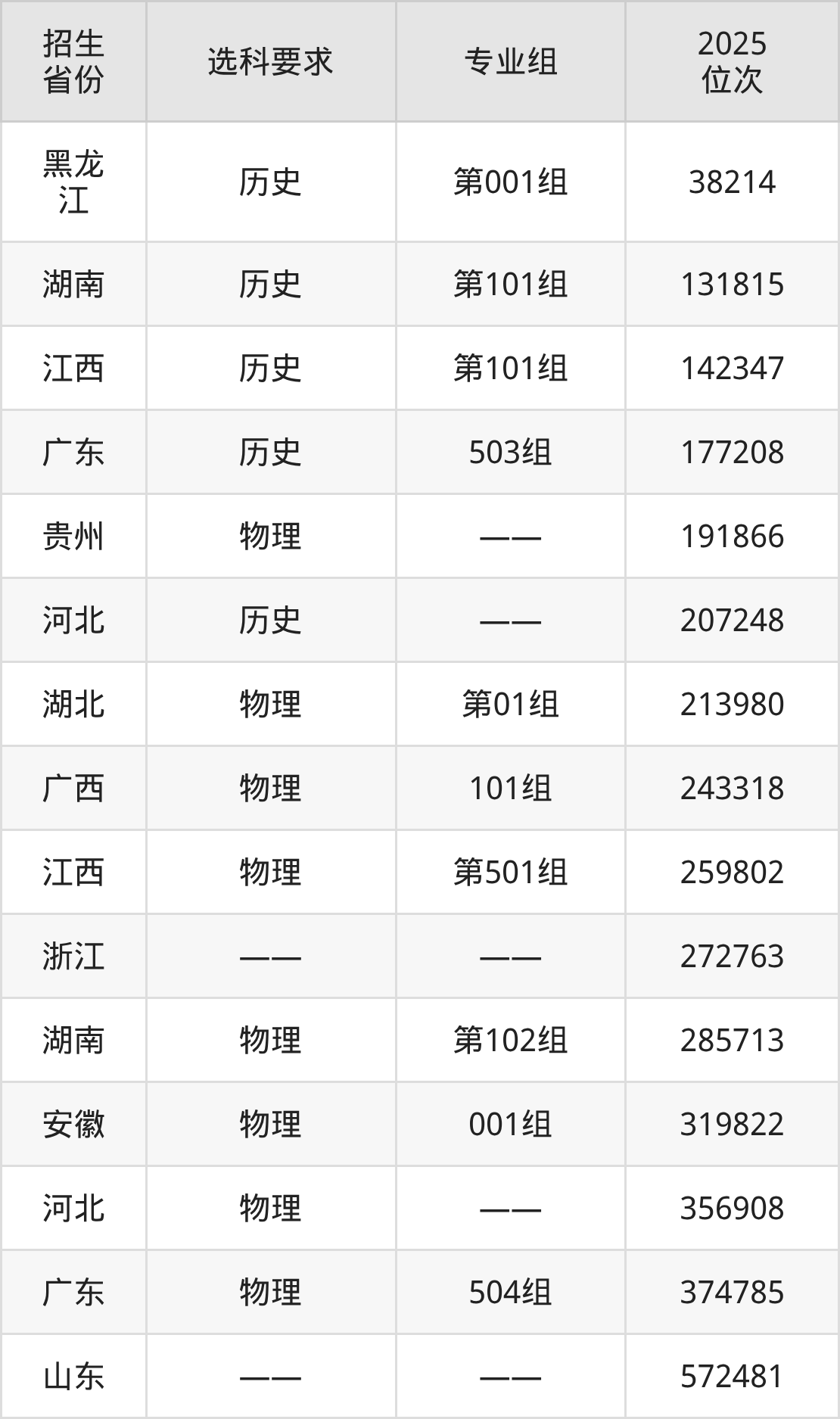 漳州理工职业学院2025年在全国各省的位次差异较大,最高位次是38214位(黑龙江历史类)、最低位次是572481位(山东)。各省具体位次请看下图: