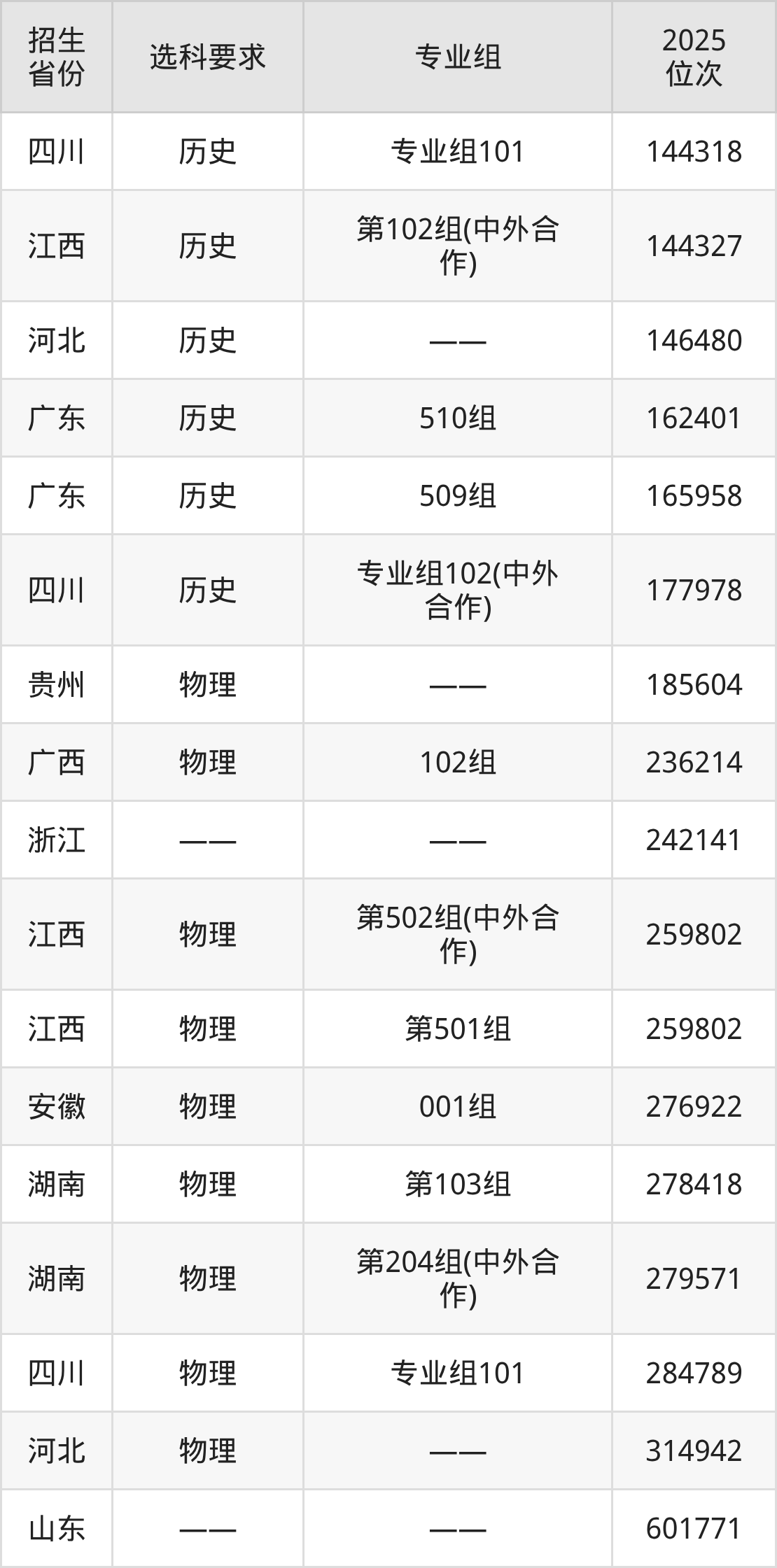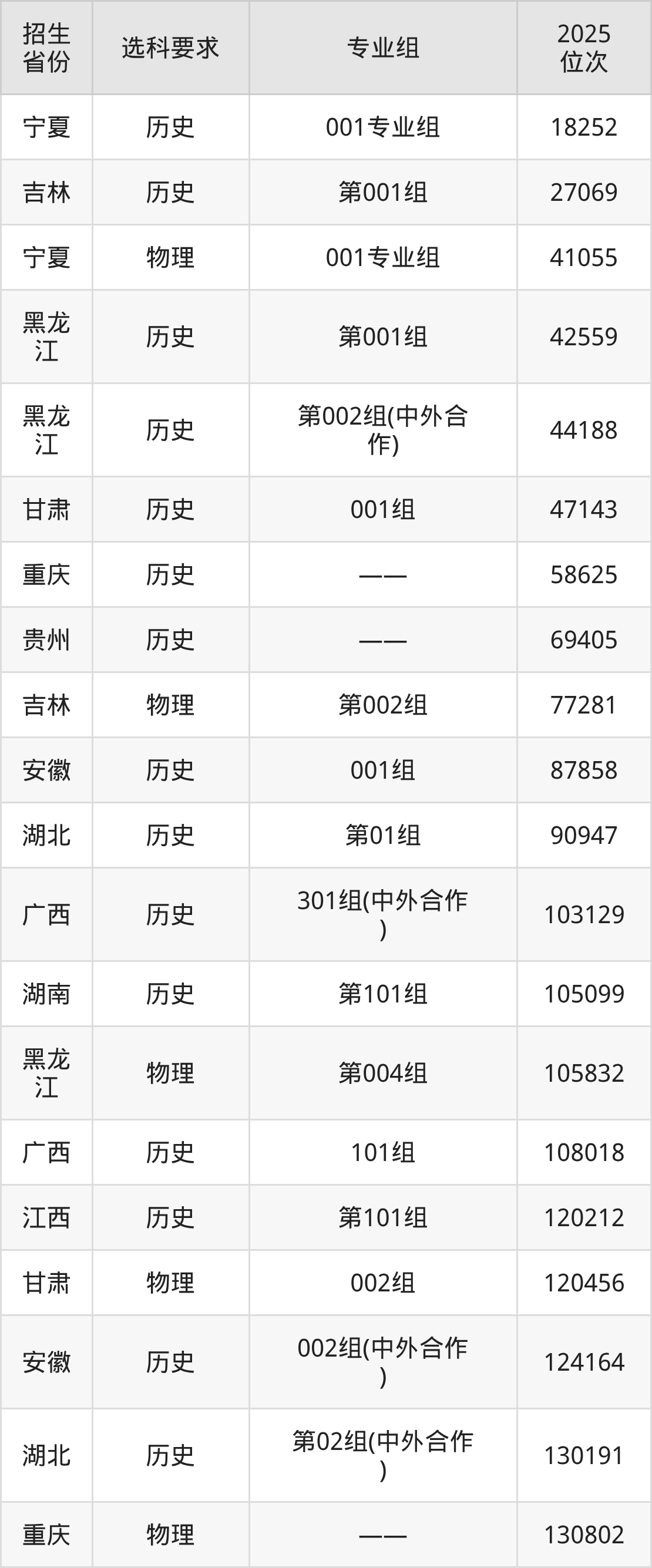 上饶幼儿师范高等专科学校2025年在全国各省的位次差异较大,最高位次是18252位(宁夏历史类)、最低位次是601771位(山东)。各省具体位次请看下图: