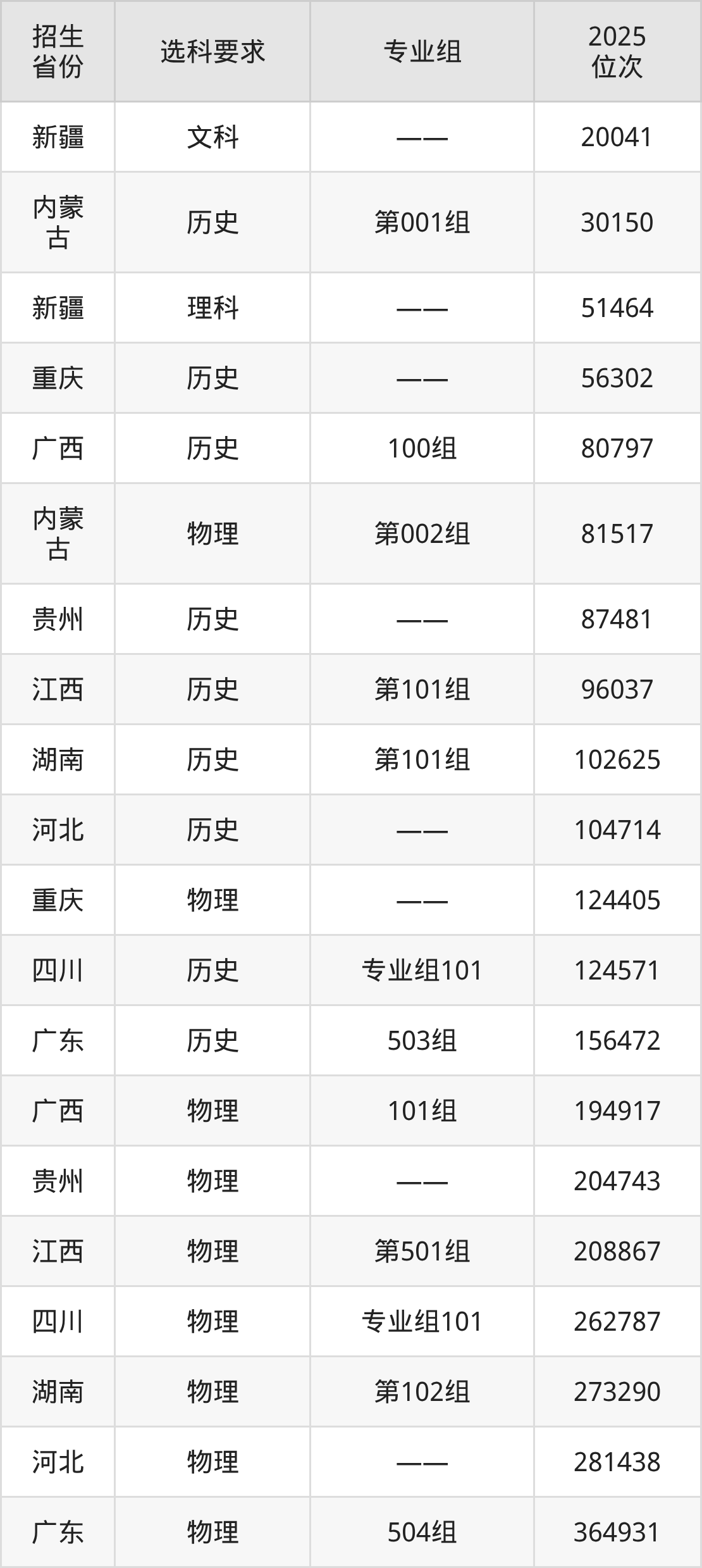 怀化职业技术学院2025年在全国各省的位次差异较大,最高位次是20041位(新疆文科)、最低位次是364931位(广东物理类)。各省具体位次请看下图: