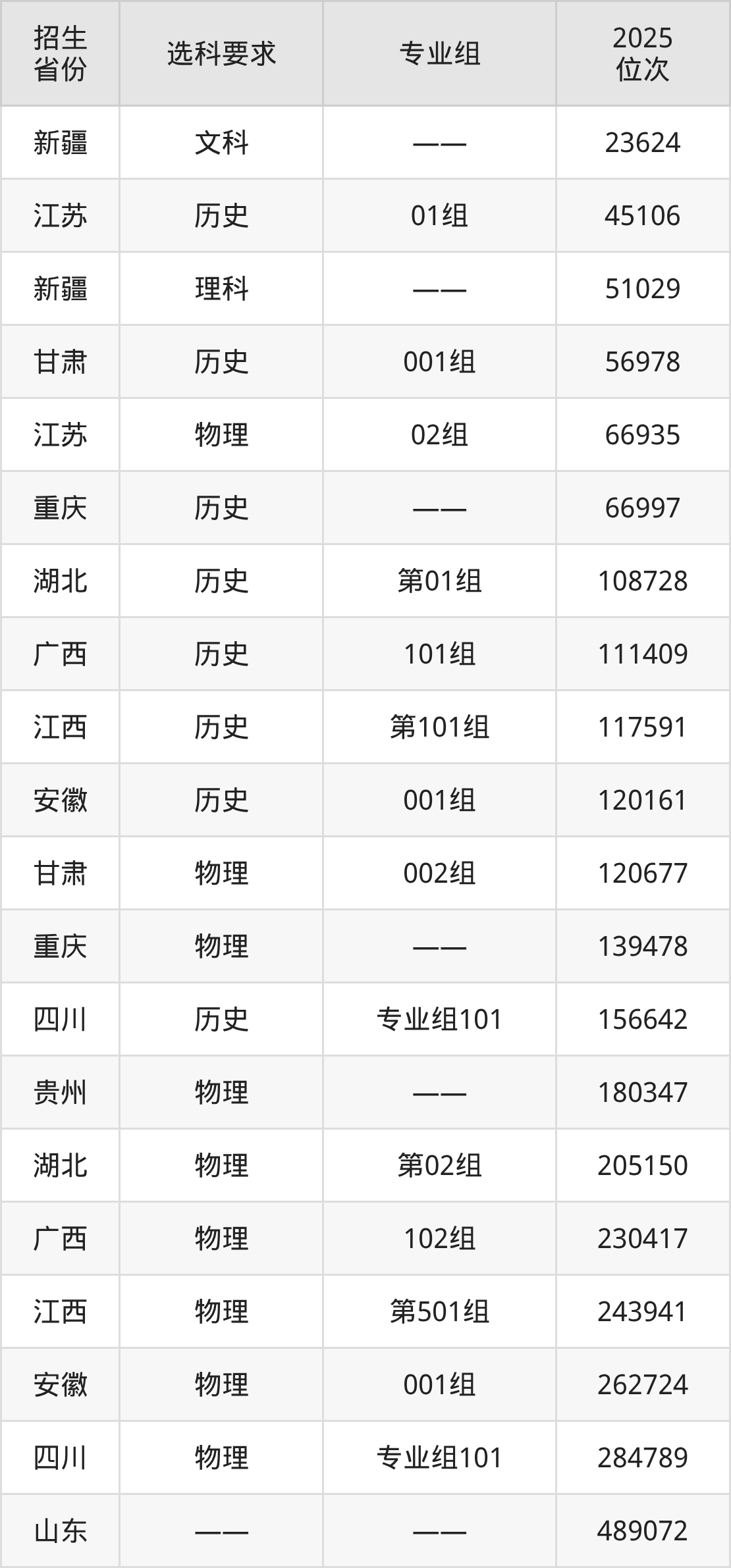 武汉科技职业学院2025年在全国各省的位次差异较大,最高位次是23624位(新疆文科)、最低位次是489072位(山东)。各省具体位次请看下图:
