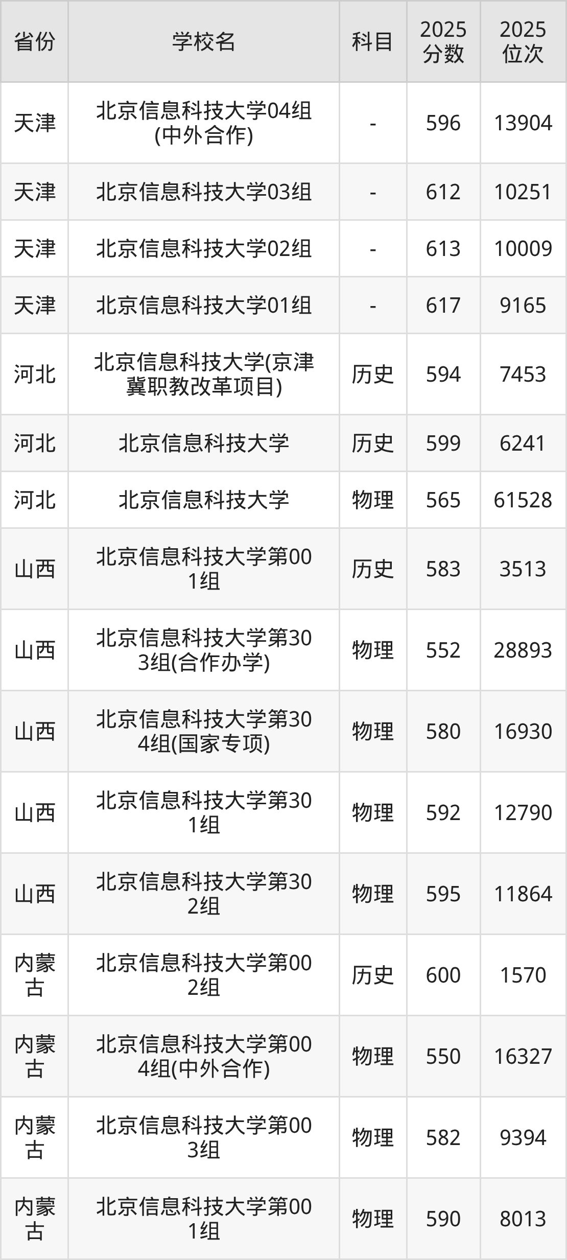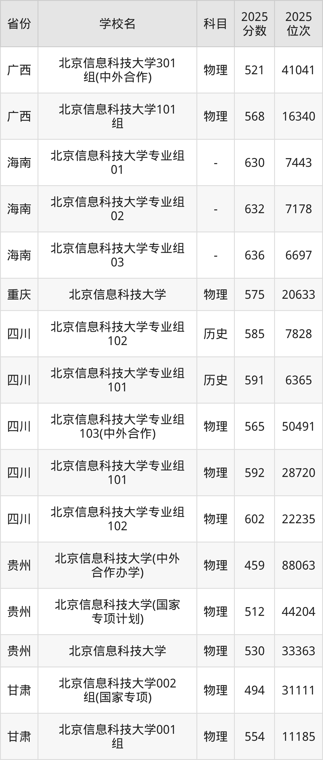 下面是北京信息科技大学2025年录取分数线各省汇总,一起来了解下吧。