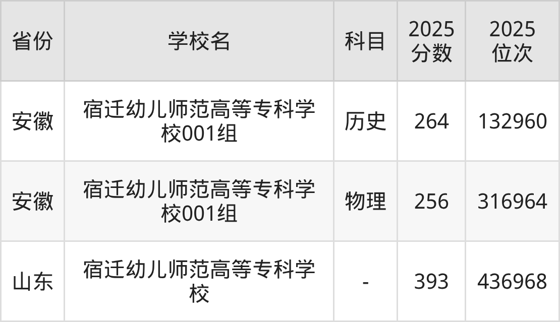 下面是宿迁幼儿师范高等专科学校2025年录取分数线各省汇总,一起来了解下吧。