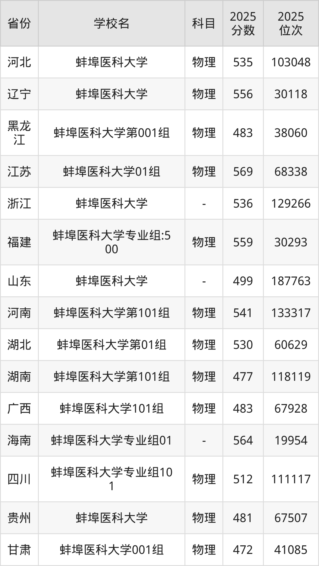 下面是蚌埠医科大学2025年录取分数线各省汇总,一起来了解下吧。